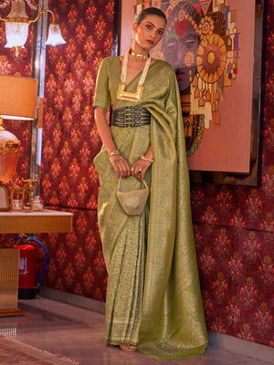 • Juniper Green Banarasi Khaddi Georgette Saree