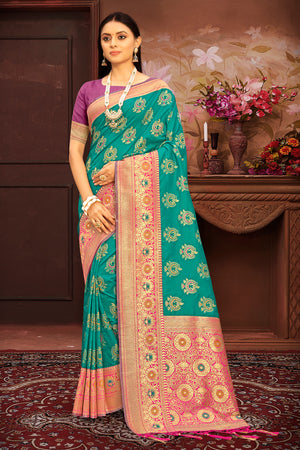 • Hunter Green Banarasi Khaddi Georgette Saree