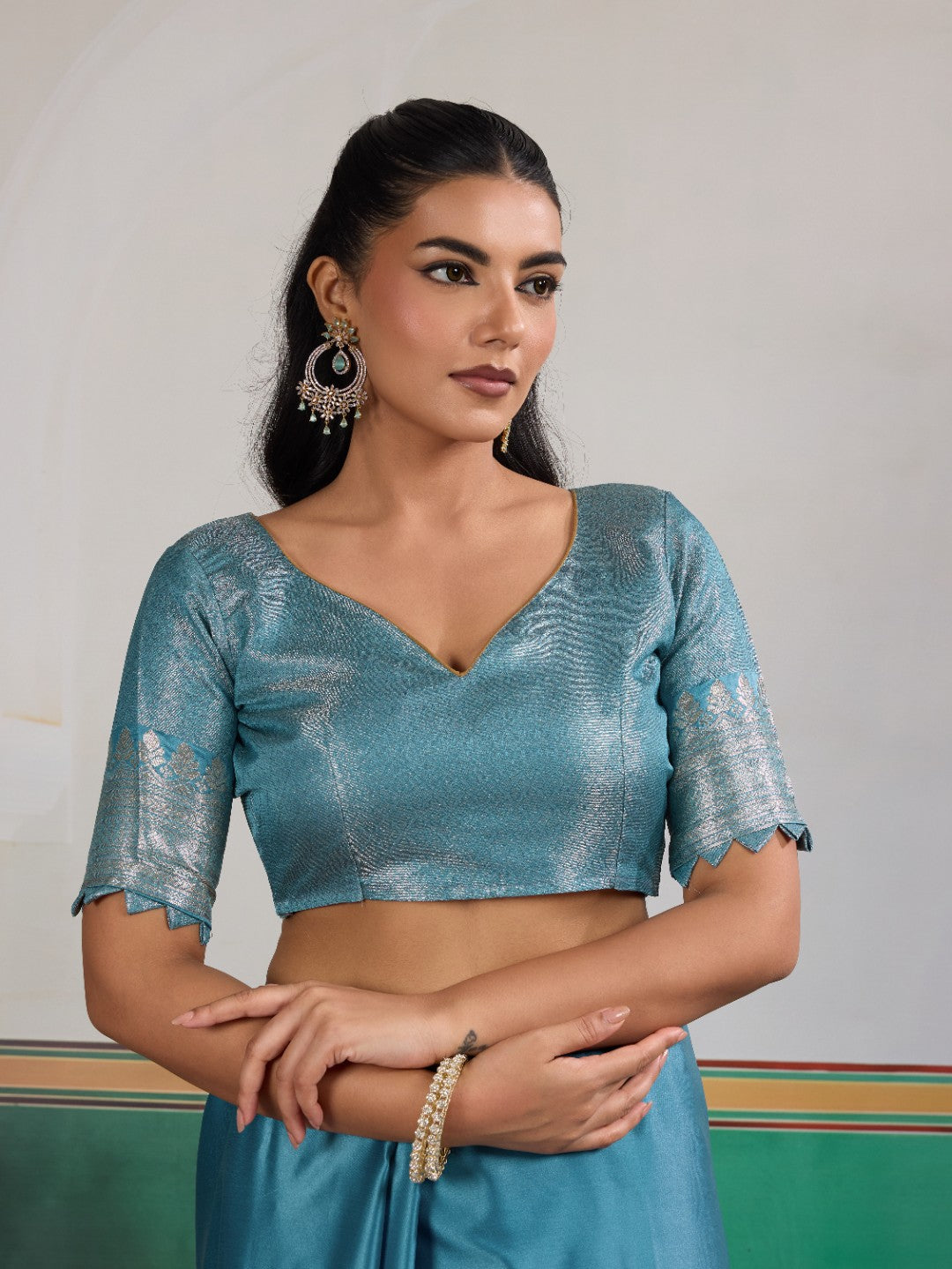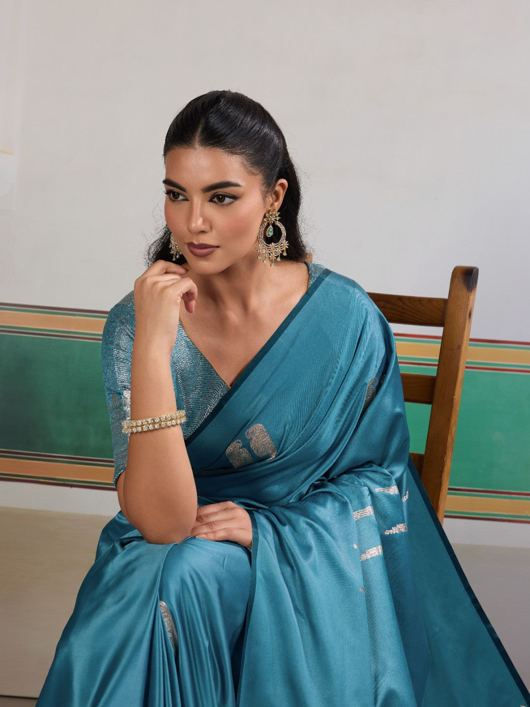 Blue Pure Satin Handloom Weaving Saree With Blouse Piece 56351