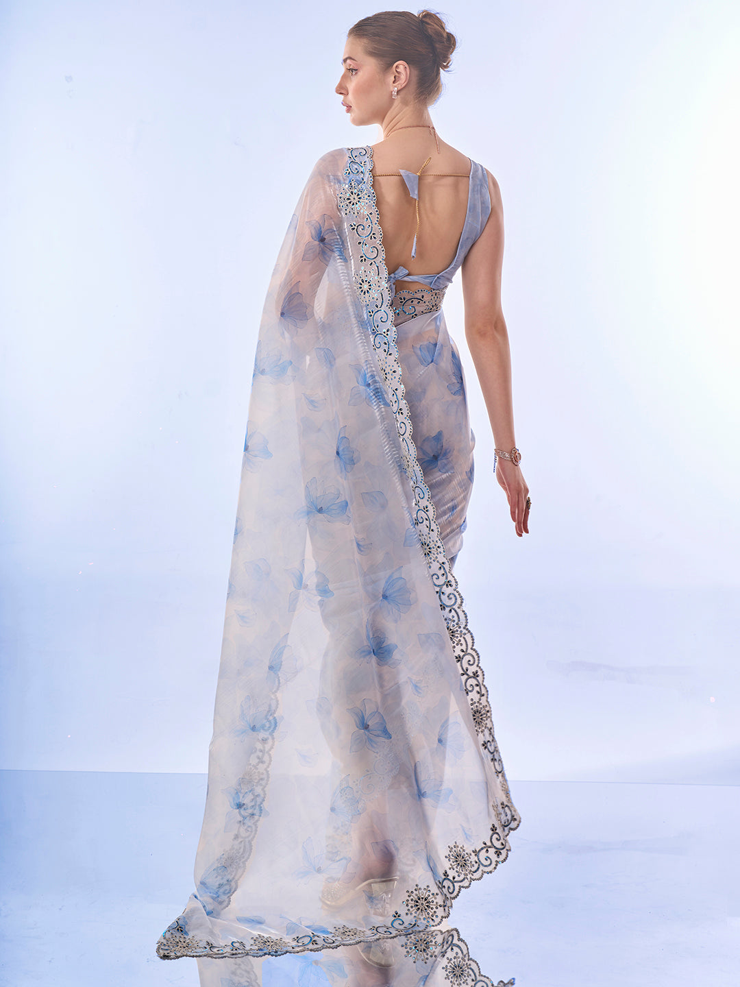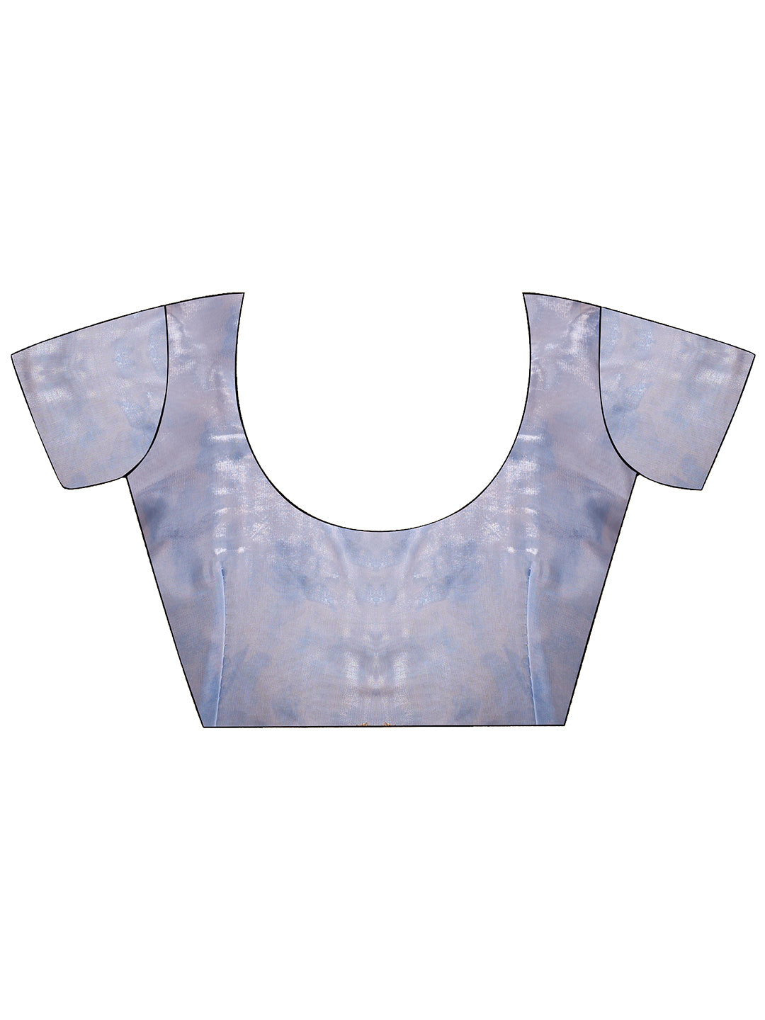 Blue Tissue Organza Saree With Blouse Piece 67911