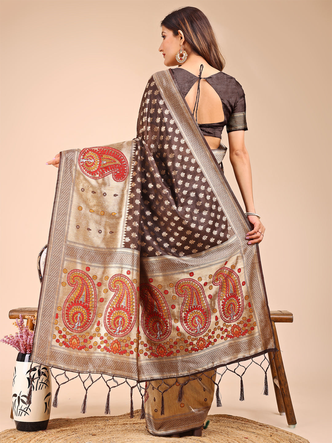 Brown Linen Cotton Saree With Blouse Piece 36426