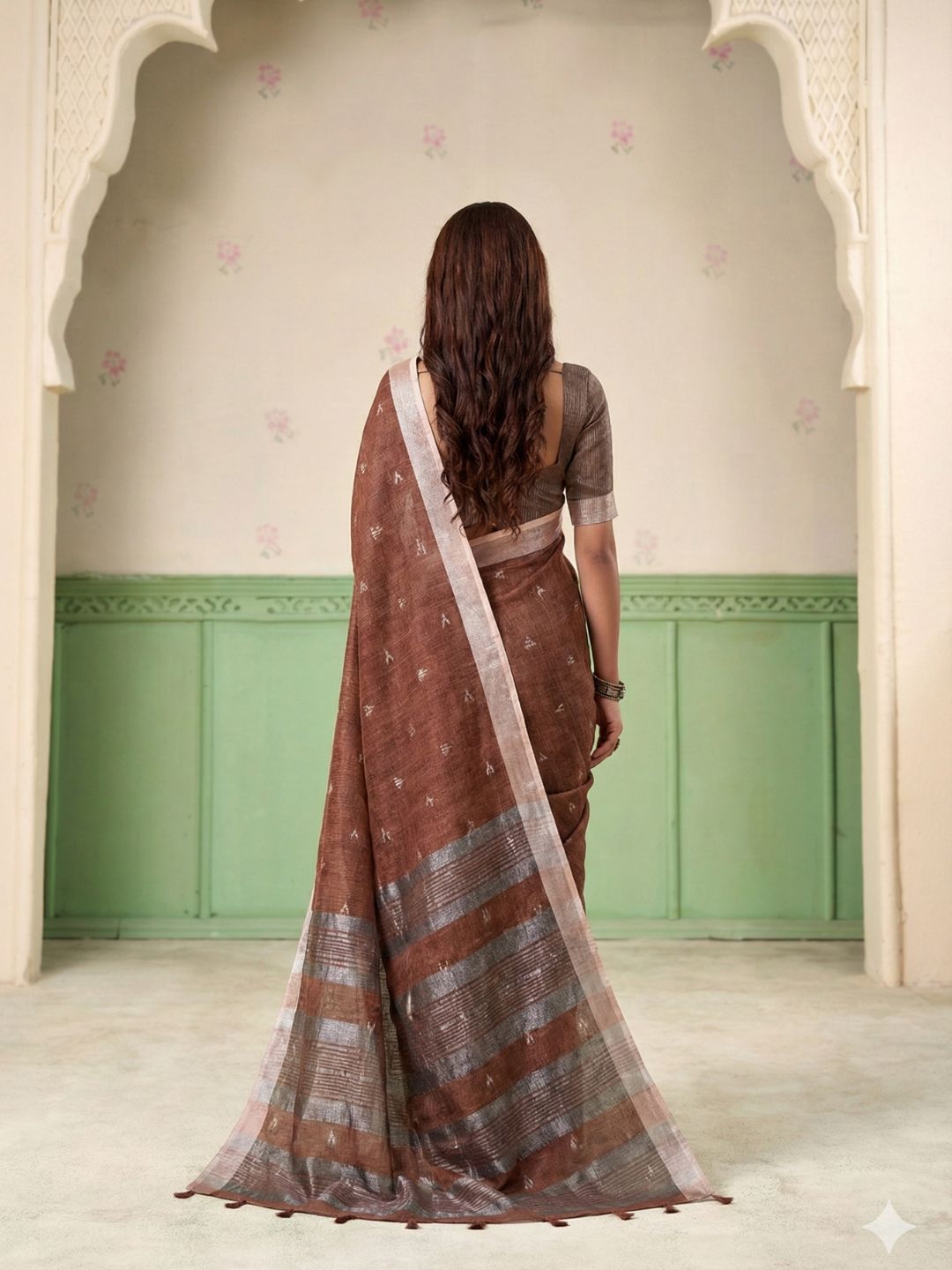 Brown Linen Silk Handloom Saree With Blouse Piece 81498