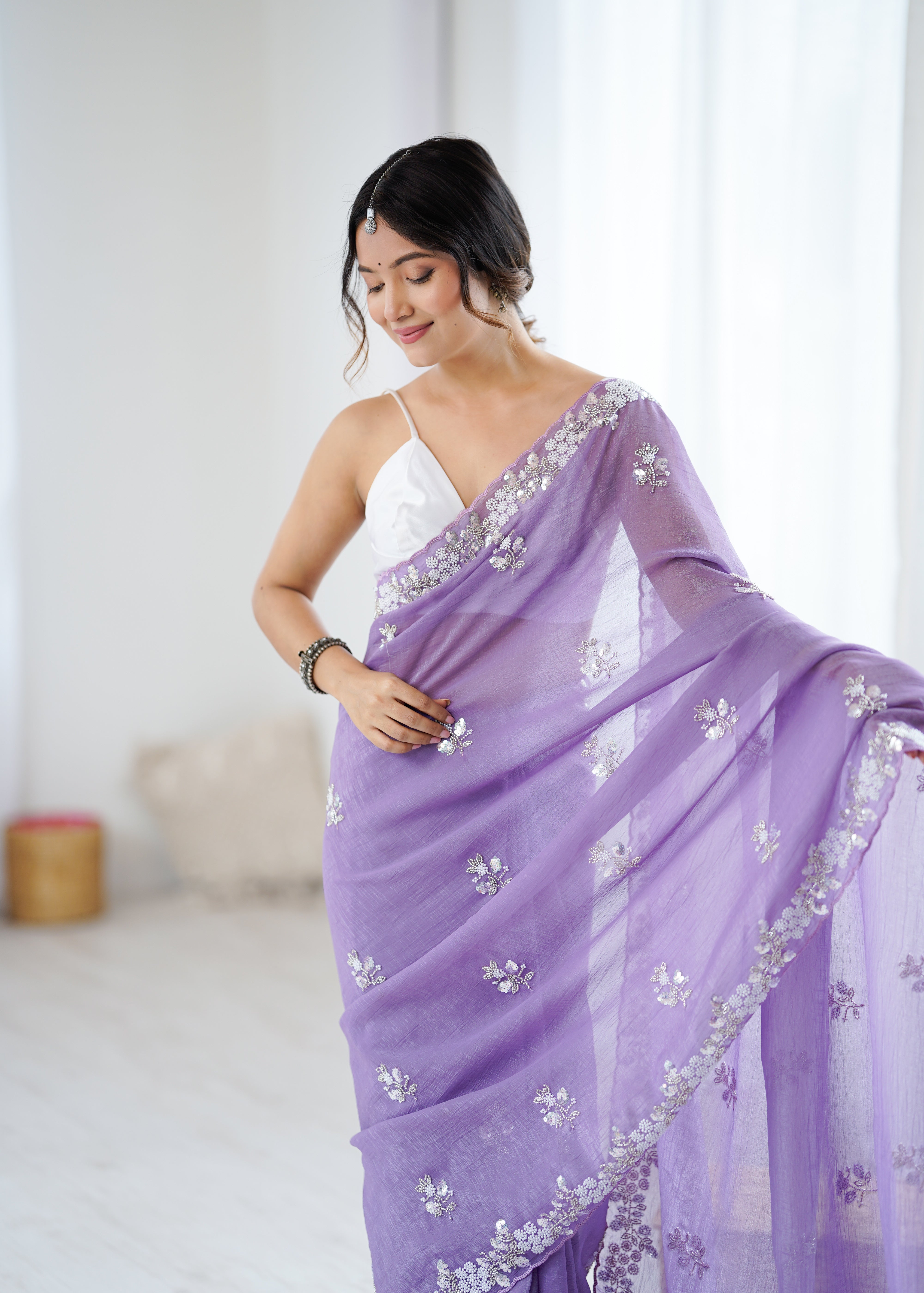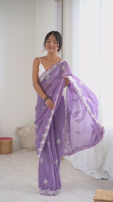 Chiffon Shaded Crush Sequins And Moti And Cut Dana Embroidered Work Ultra Satin Blouse Piece 67842