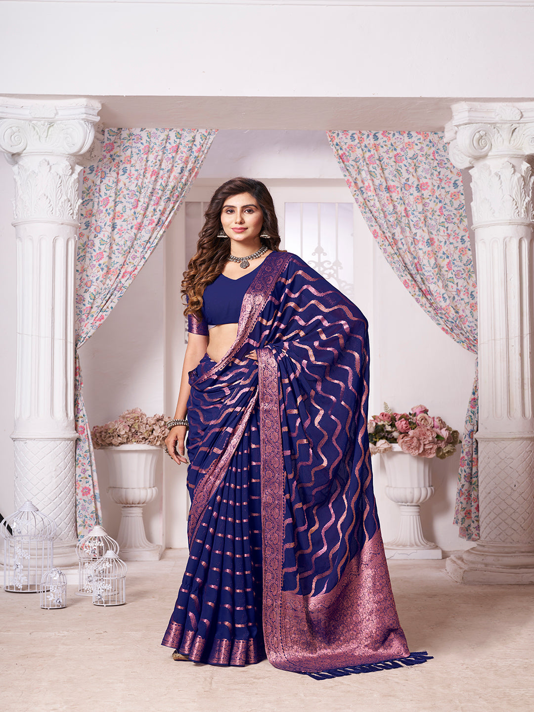 Chinon Banarasi Silk Saree With Blouse Piece 12279