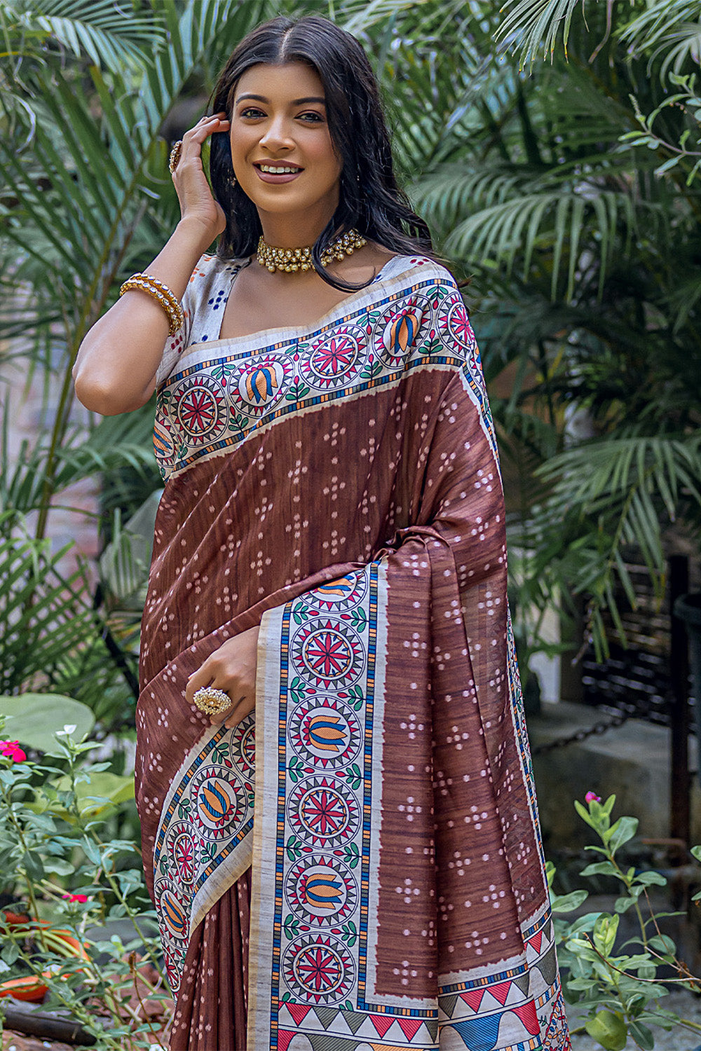 Coffee Brown Tussar Silk Blend Saree With Blouse Piece 47763