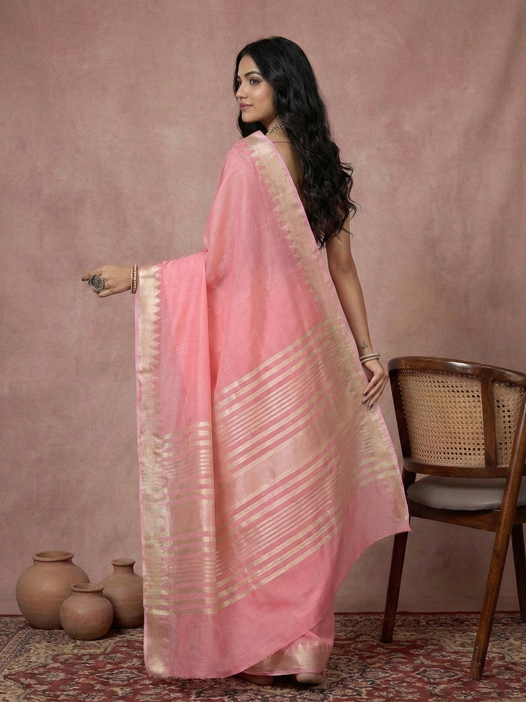 Coral Pink Cotton Saree With Blouse Piece 68999