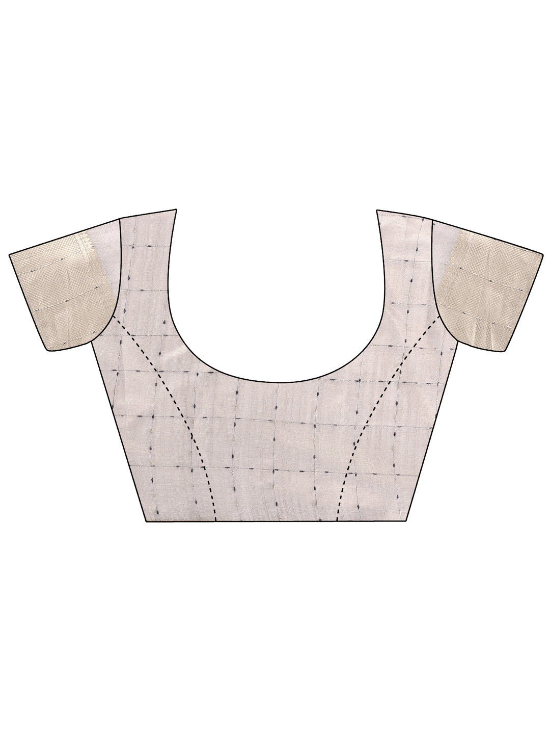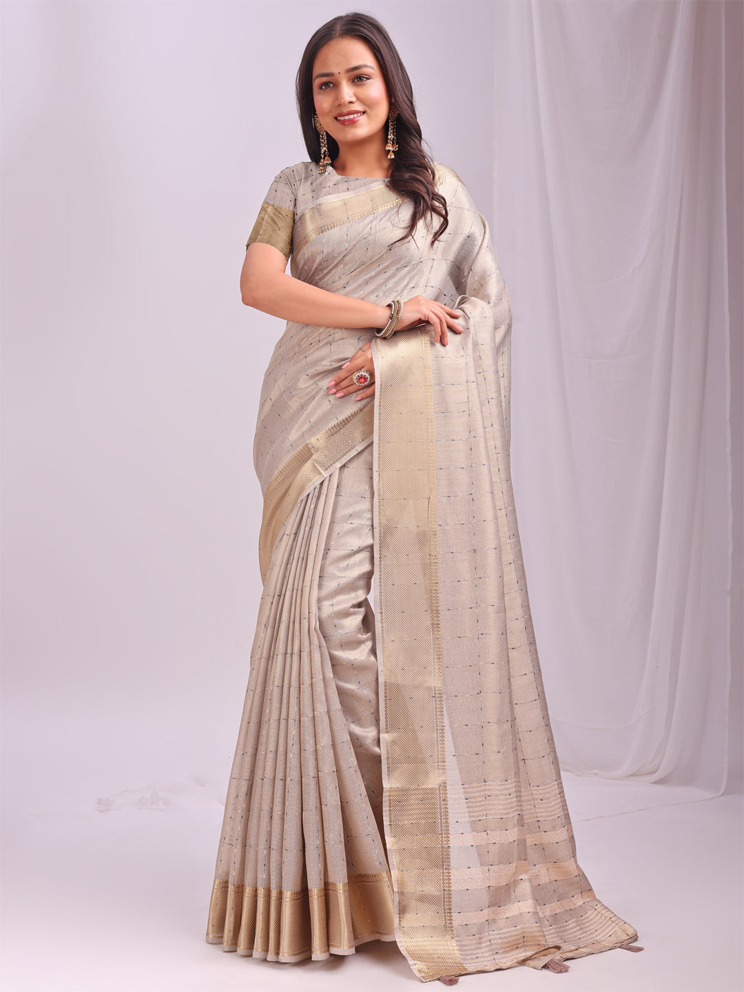 Cream Casual Checks Organza Saree With Blouse Piece 90097