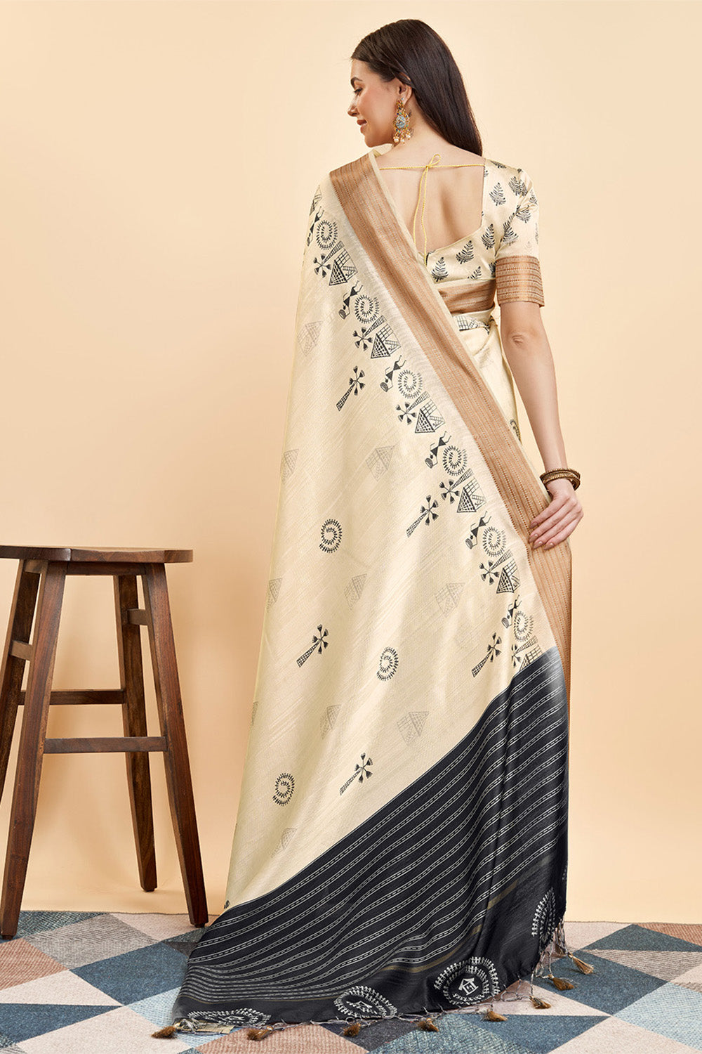 Cream Silk Ethnic Motifs Printed Saree 67578