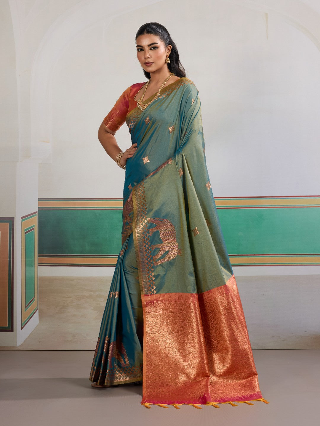 Dark Green Pure Silk Handloom Weaving Saree With Blouse Piece 48467