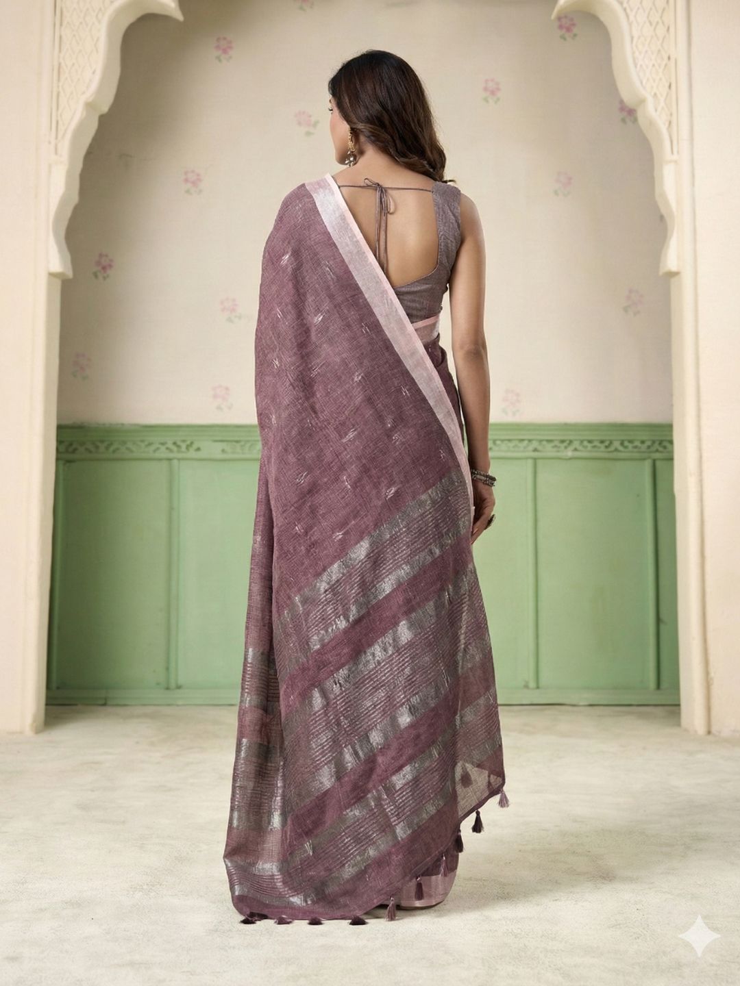 Dusty Rose Linen Silk Handloom Saree With Blouse Piece 98259