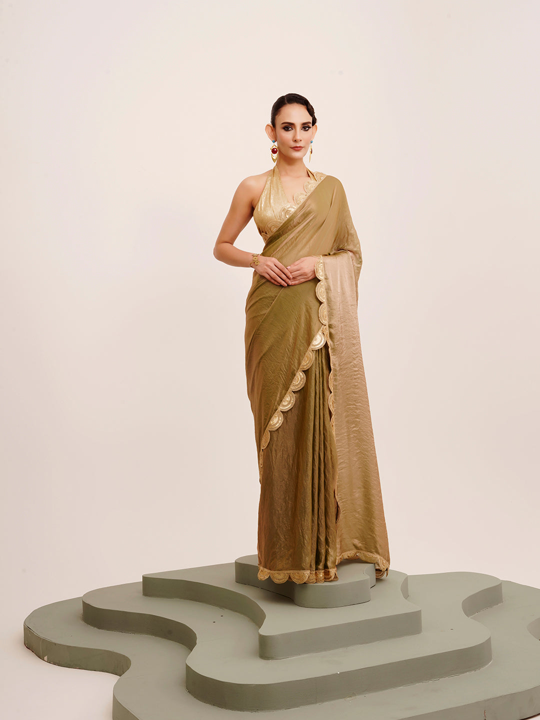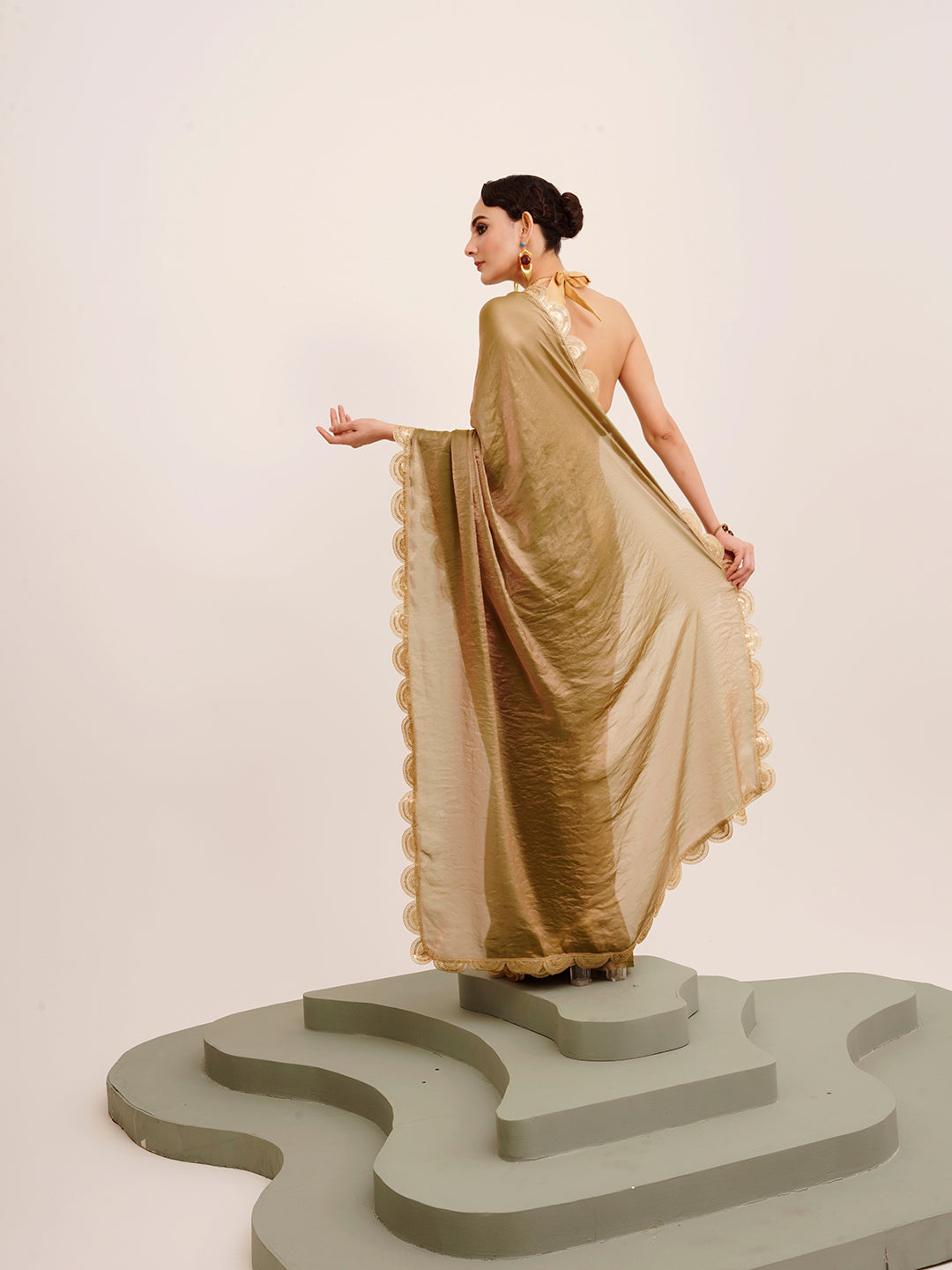 Gold Sequinned Designer Lace Tissue Saree 60347
