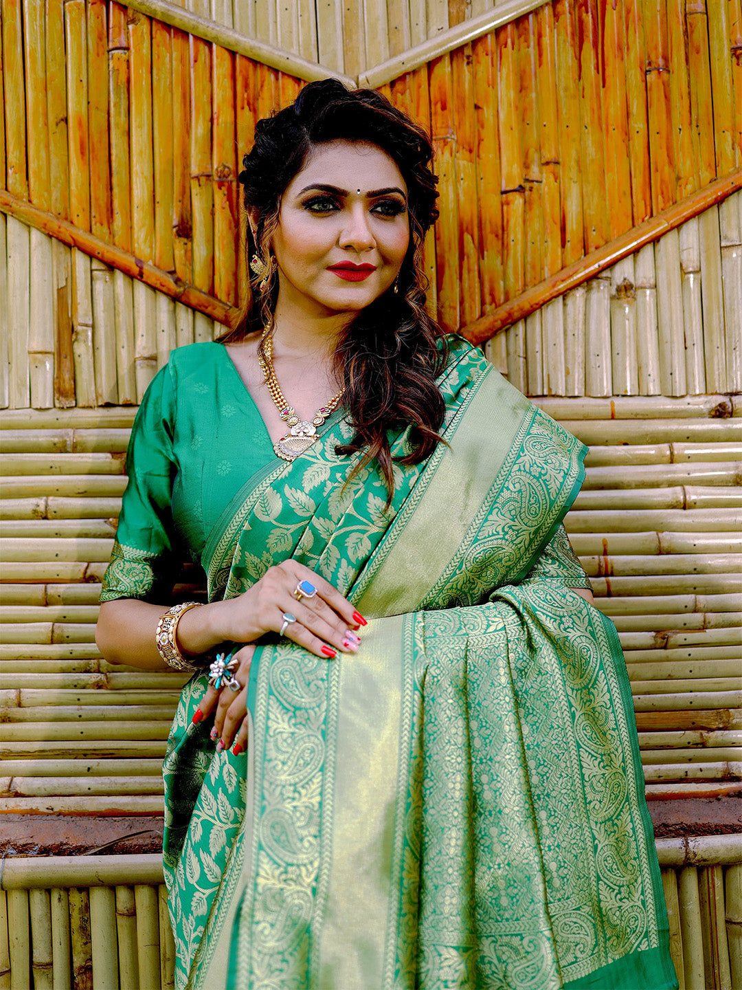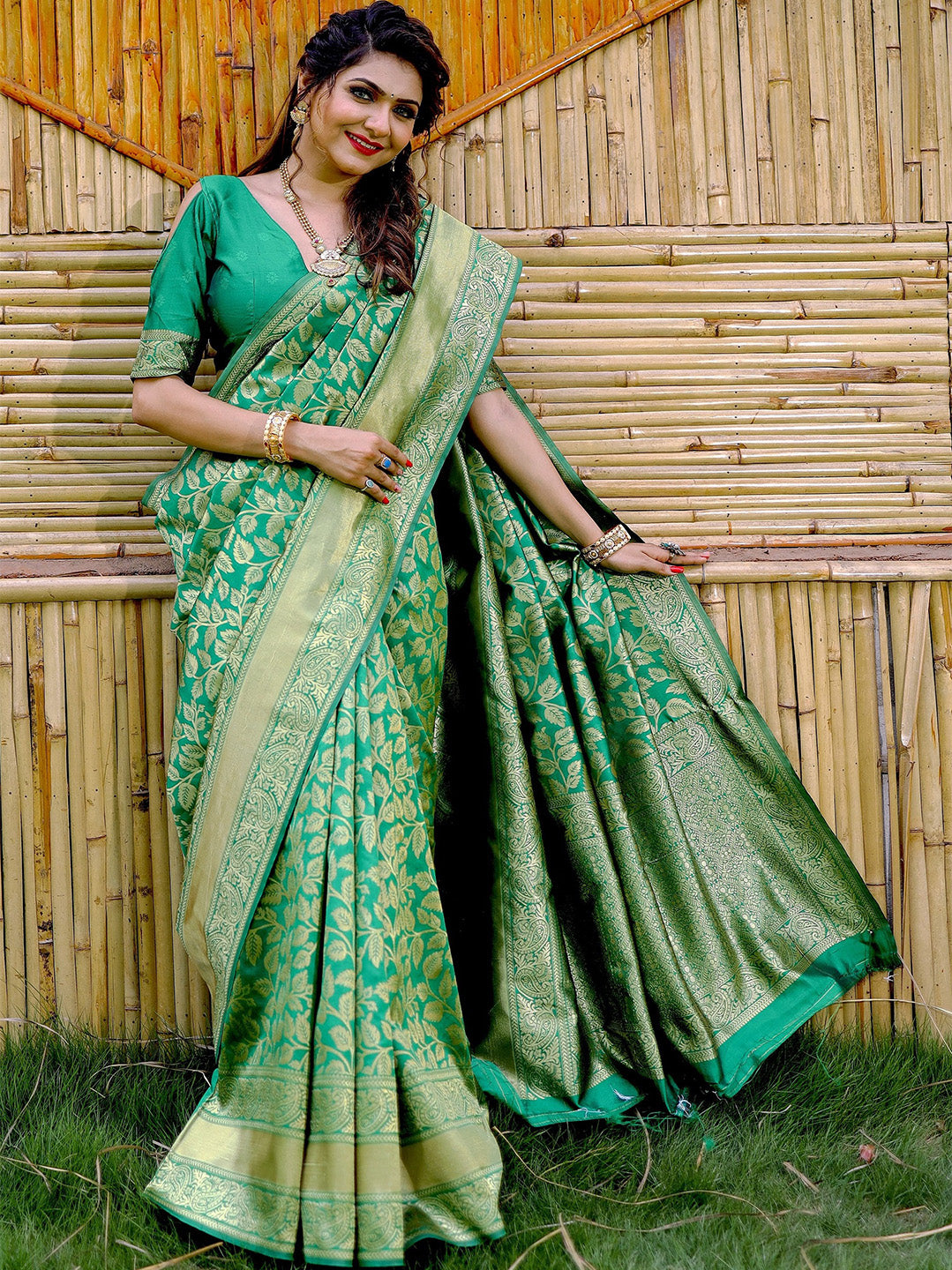 Green Banarasi Silk Saree With Blouse Piece 56309