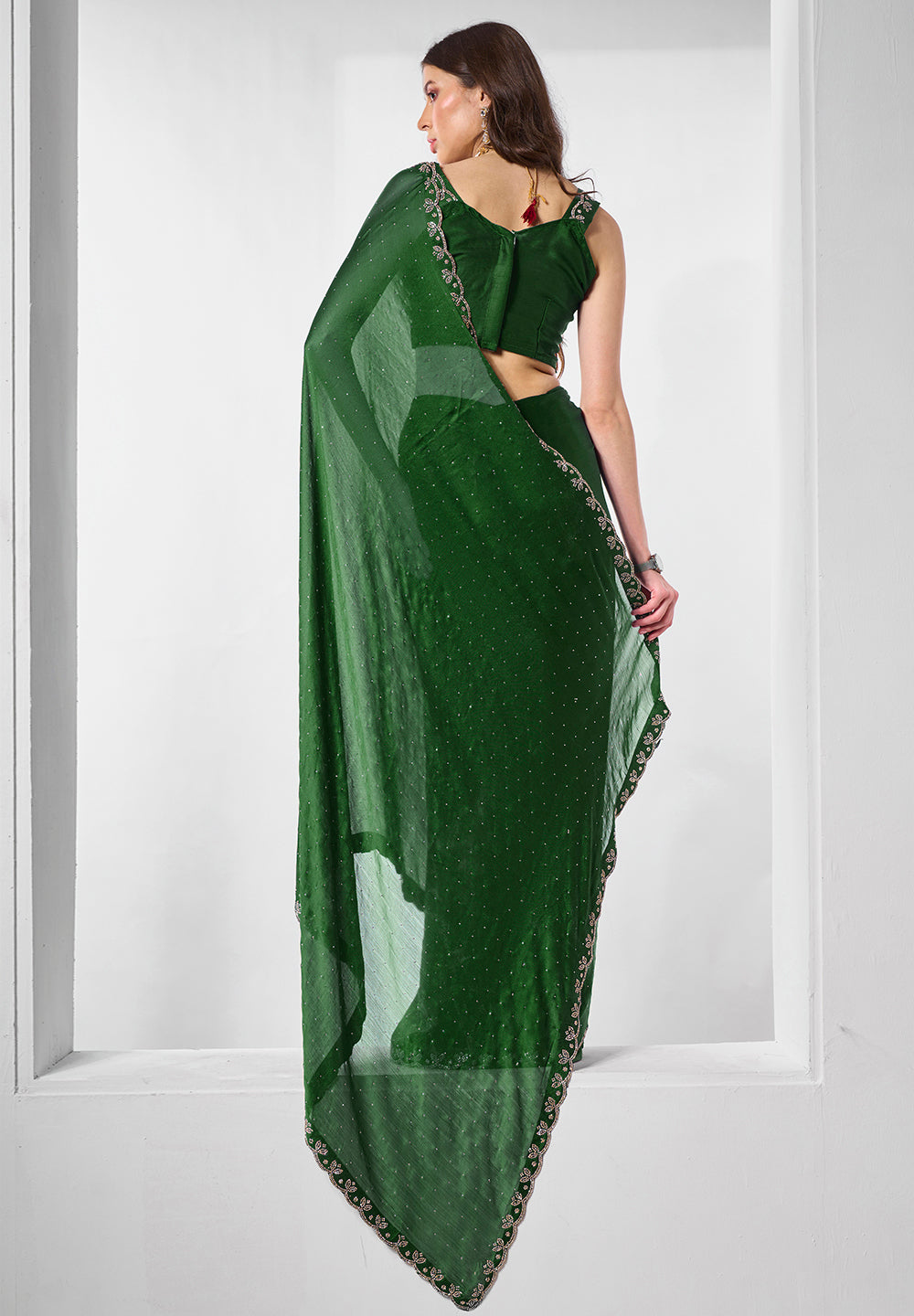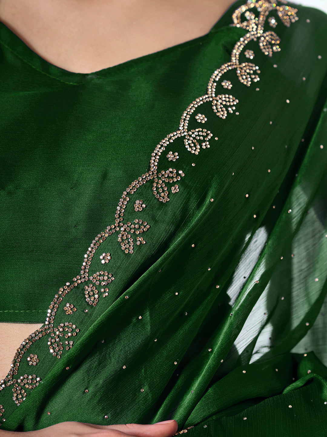 Green Embellished Beads And Stones Pure Chiffon Saree 95276