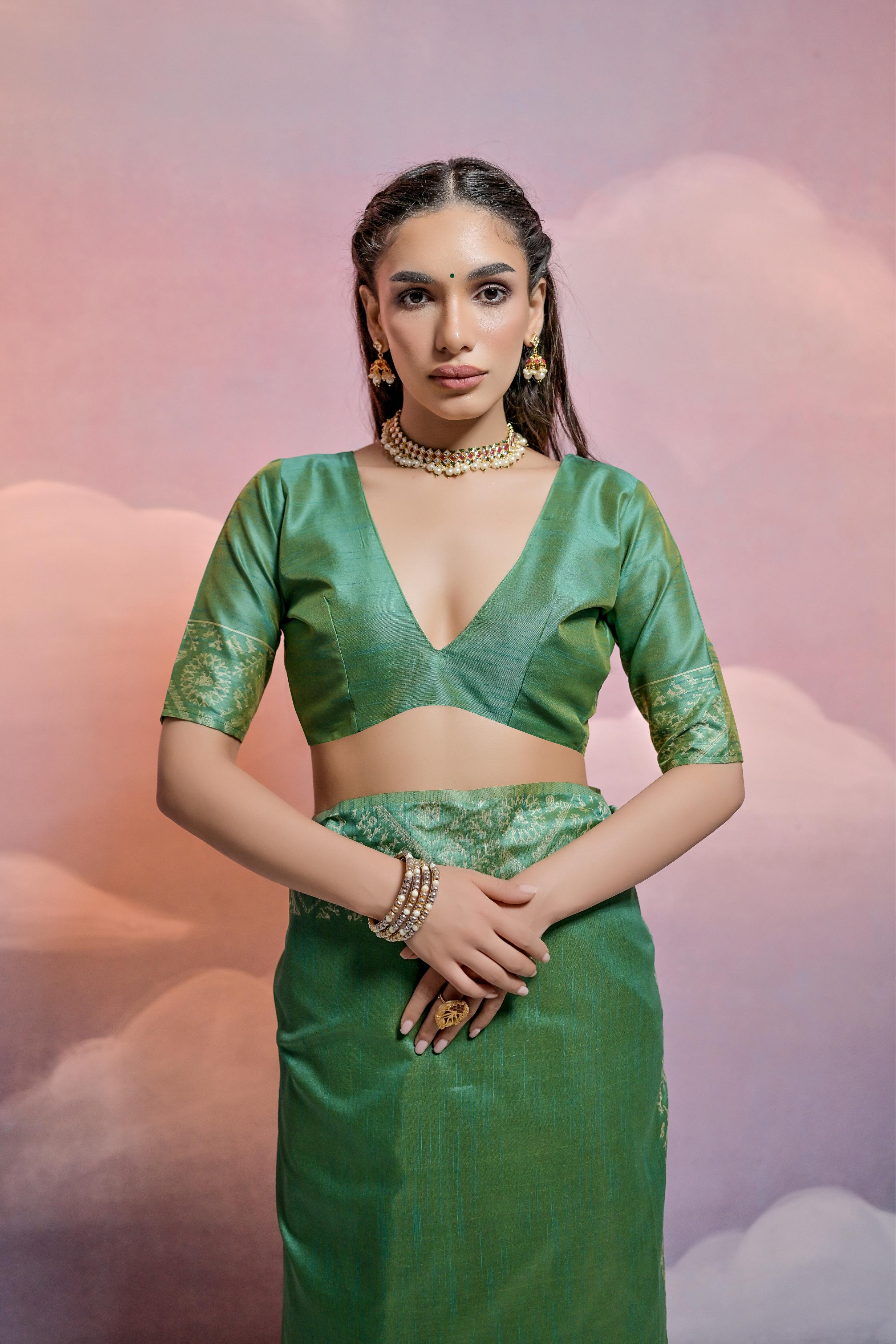 Green Handloom Raw Silk Weaving Designer Saree With Blouse 56875