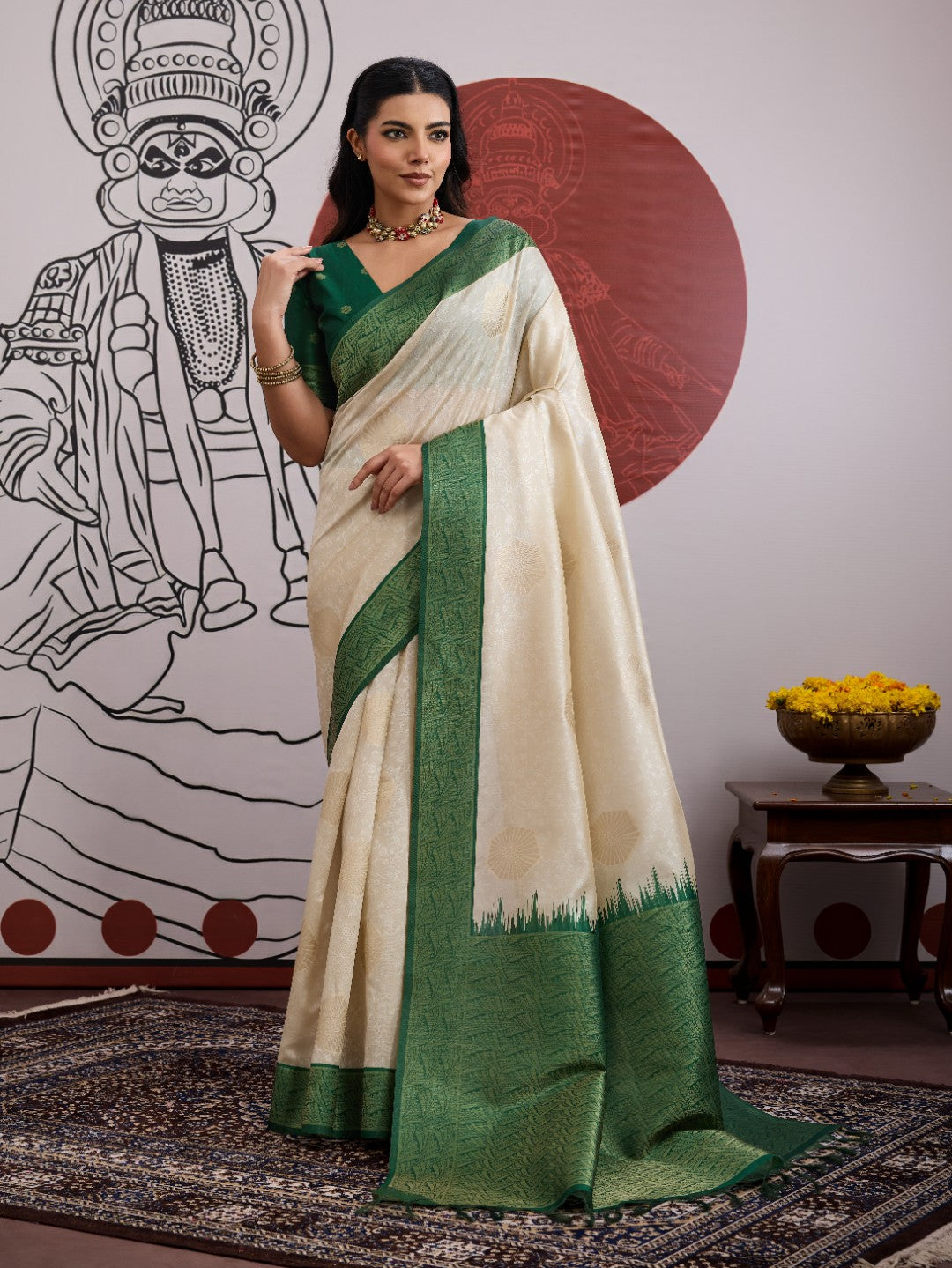 Green Handloom Weaving Paper Silk Saree With Blouse Piece 71086
