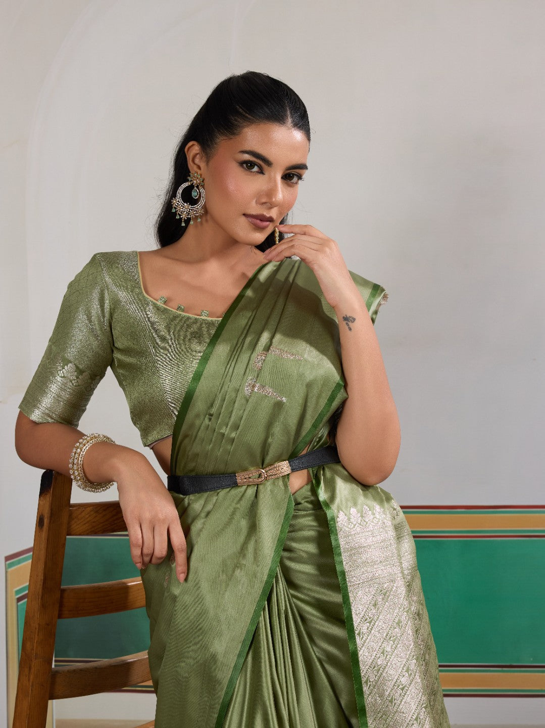 Green Pure Satin Handloom Weaving Saree With Blouse Piece 20603