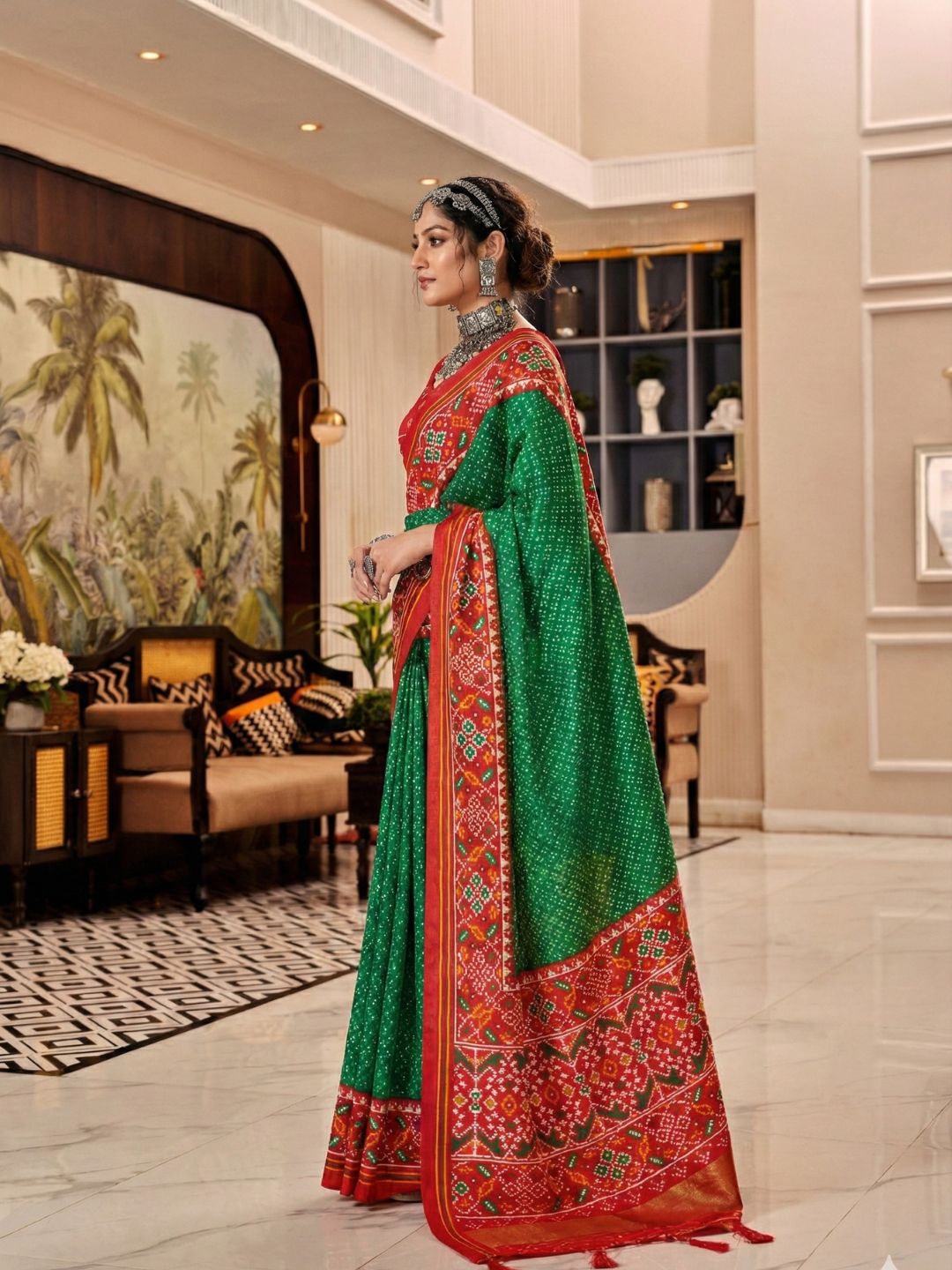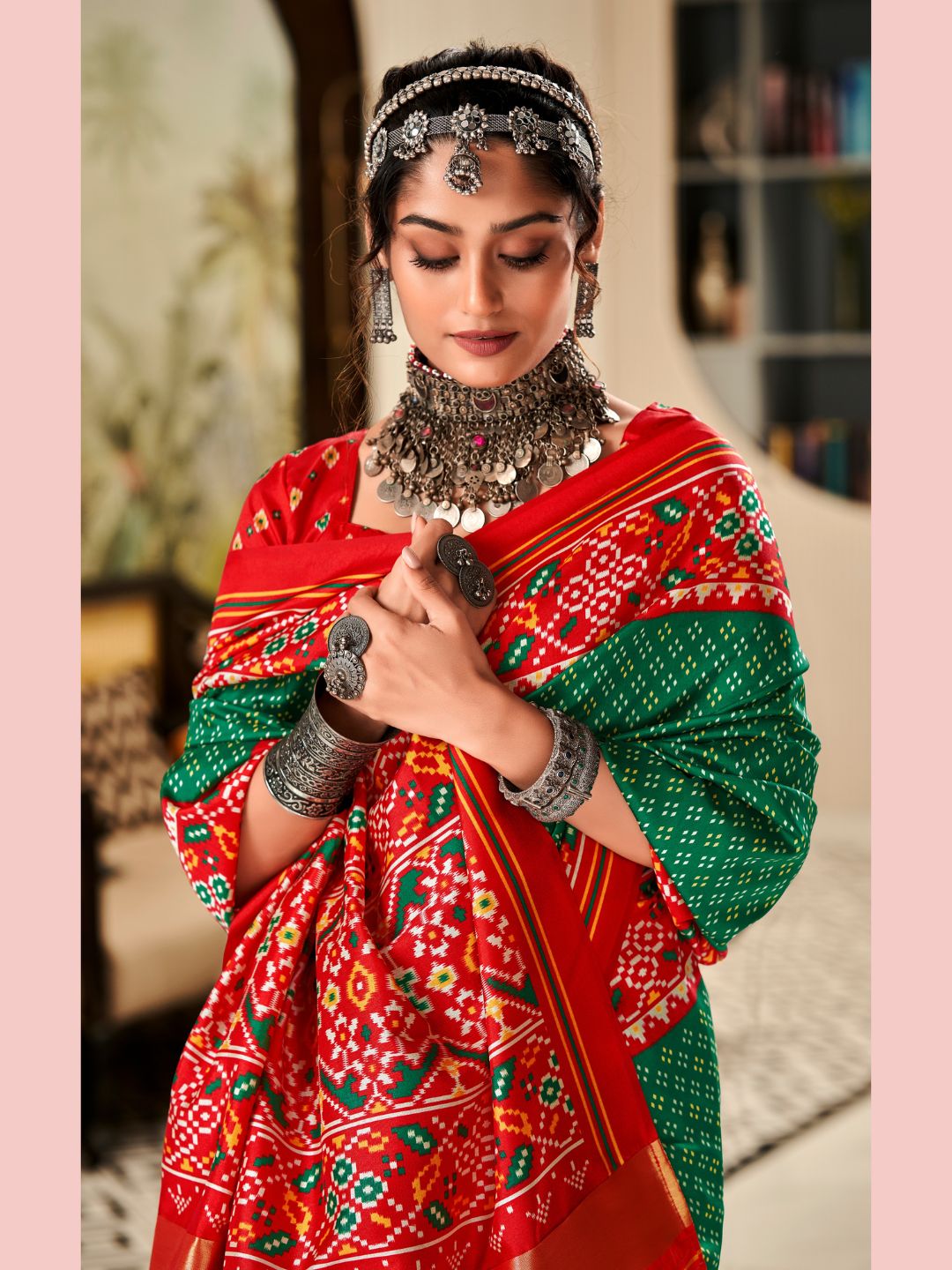 Green Red Pure Patola Silk Handloom Printed Saree With Blouse Piece 76636