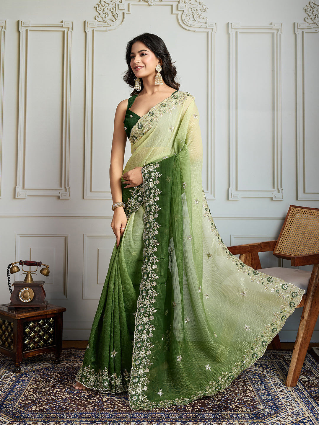 Green Soft Crush Embroidered Designer Saree With Blouse 24068