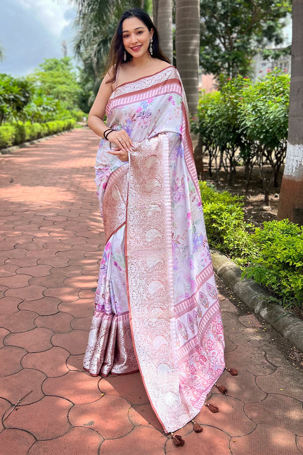 Grey Tusser Silk Saree With Grey Blouse Piece 77413