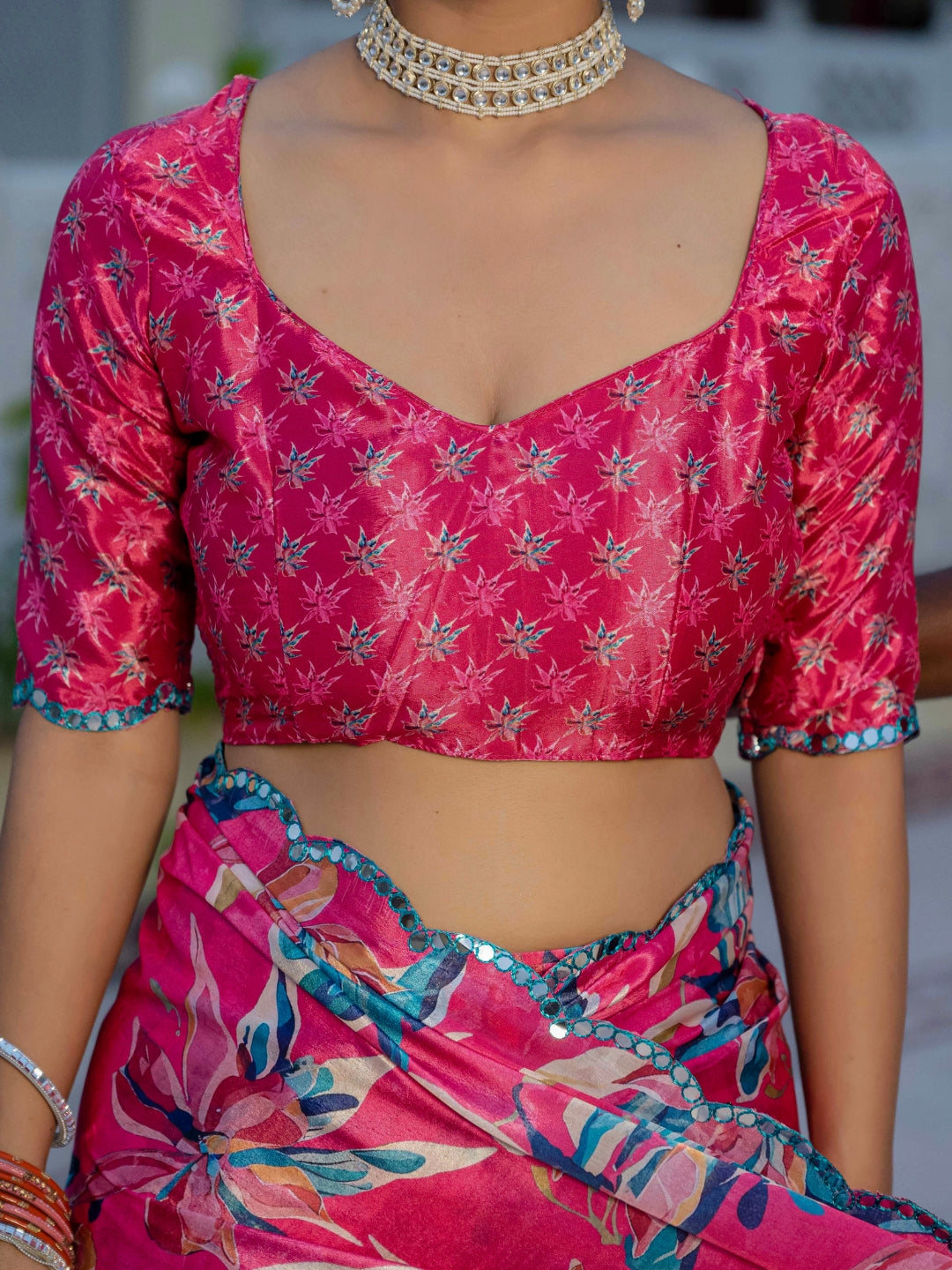 Heavy Chinon Silk With Digital Print And Cutwork Border With Embroidery 41797