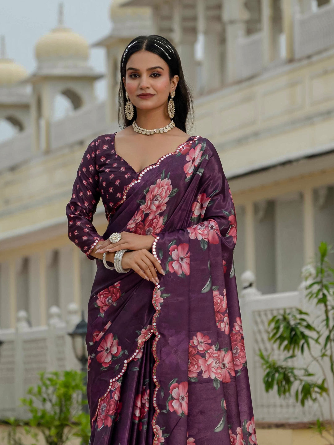 Heavy Chinon Silk With Digital Print And Cutwork Border With Embroidery 66301