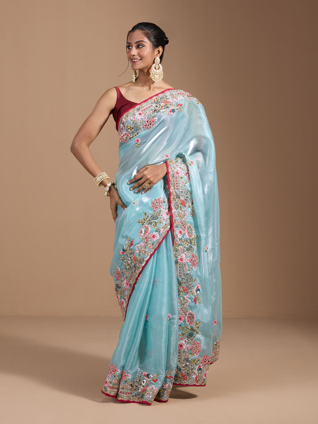 Heavy Jimmy Choo Multi Embroidered Thread Coding And Sequence Fancy Cutwork With Piping Work Saree 58760