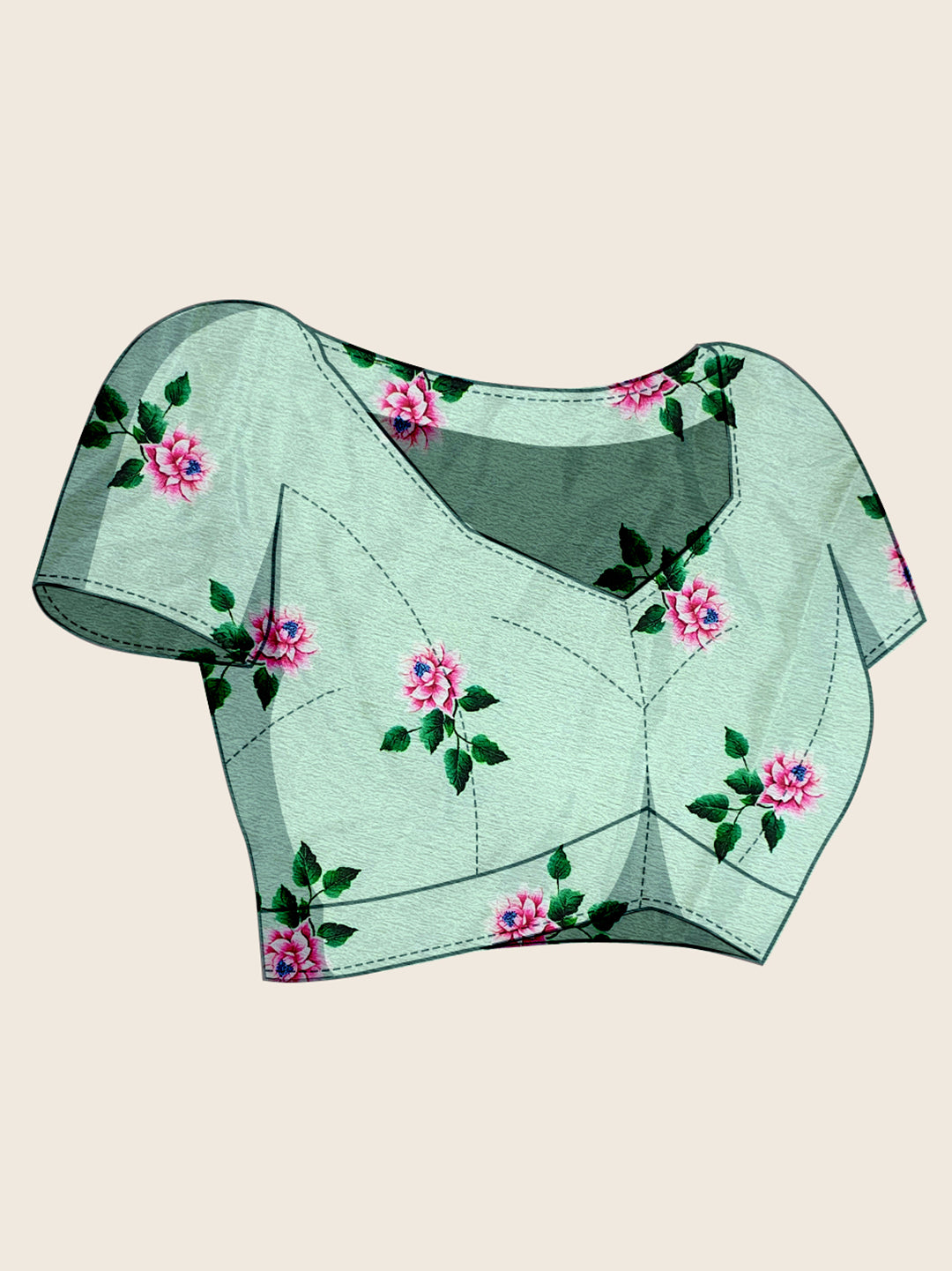 Ice Blue Chinon Saree All Over Single Colour Printed Saree With Blouse Piece 14863
