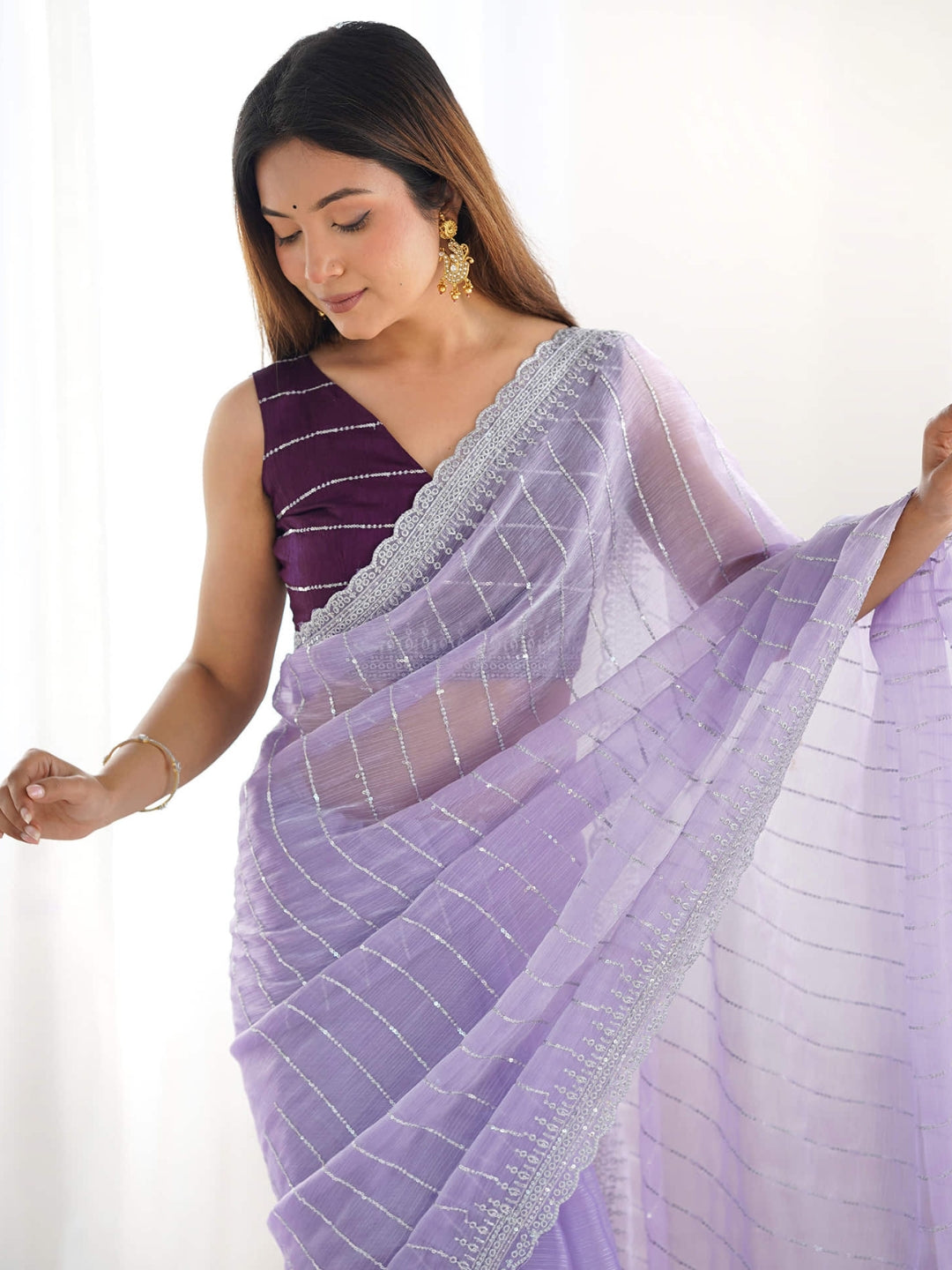 Jimmy Choo Fabric With Dual Color Sequence And Thread Embroidered Work And Cut Border Butta Work Saree 16396