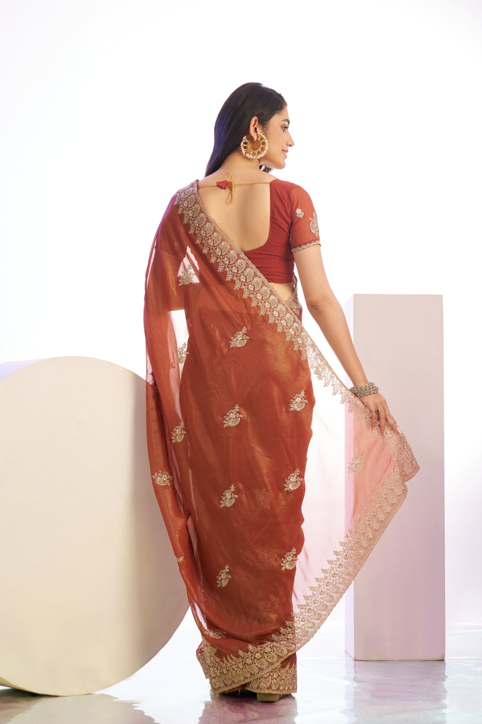 Jimmy Chu Tissue Embroidered Work Saree With Embroidered Blouse Piece 28820