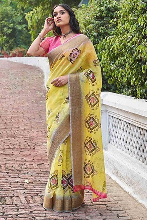 Lemon Yellow Linen Saree 60344