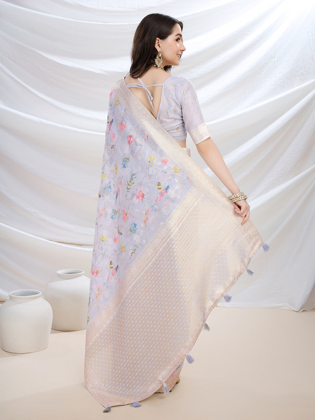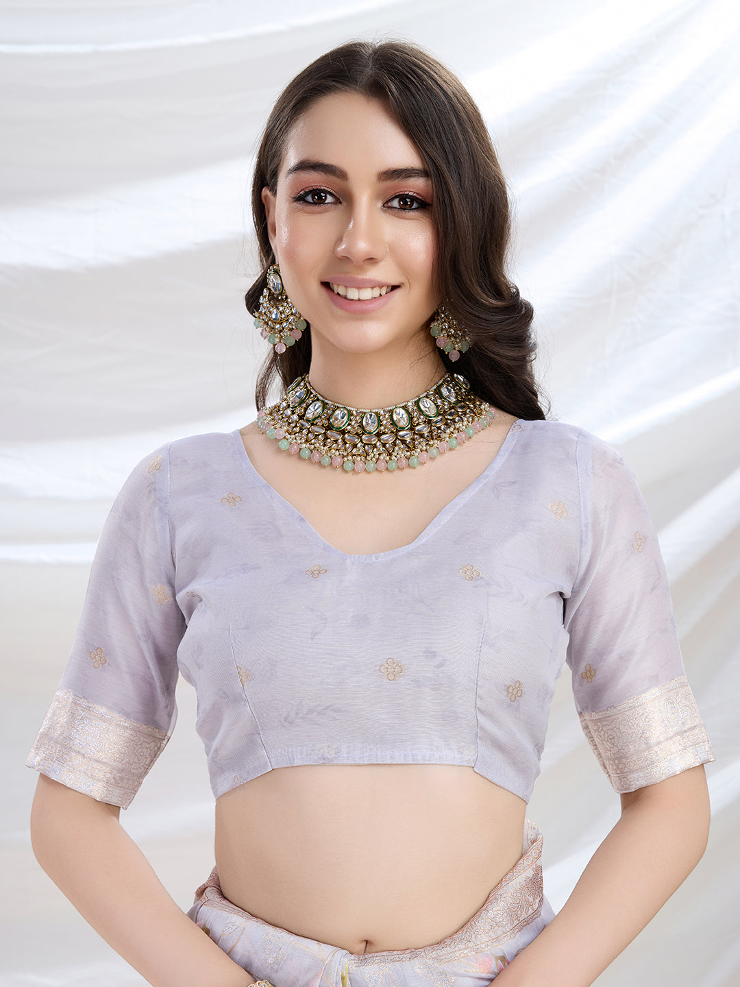 Light Purple Pure Cotton Festive Wear Saree With Blouse Piece 93919