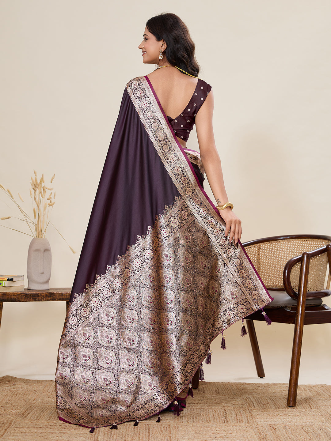 Maroon Pure Satin Silk Gala Border Concept Weaved With Jari And Minakari Rich Pallu Saree With Blouse Piece 51658