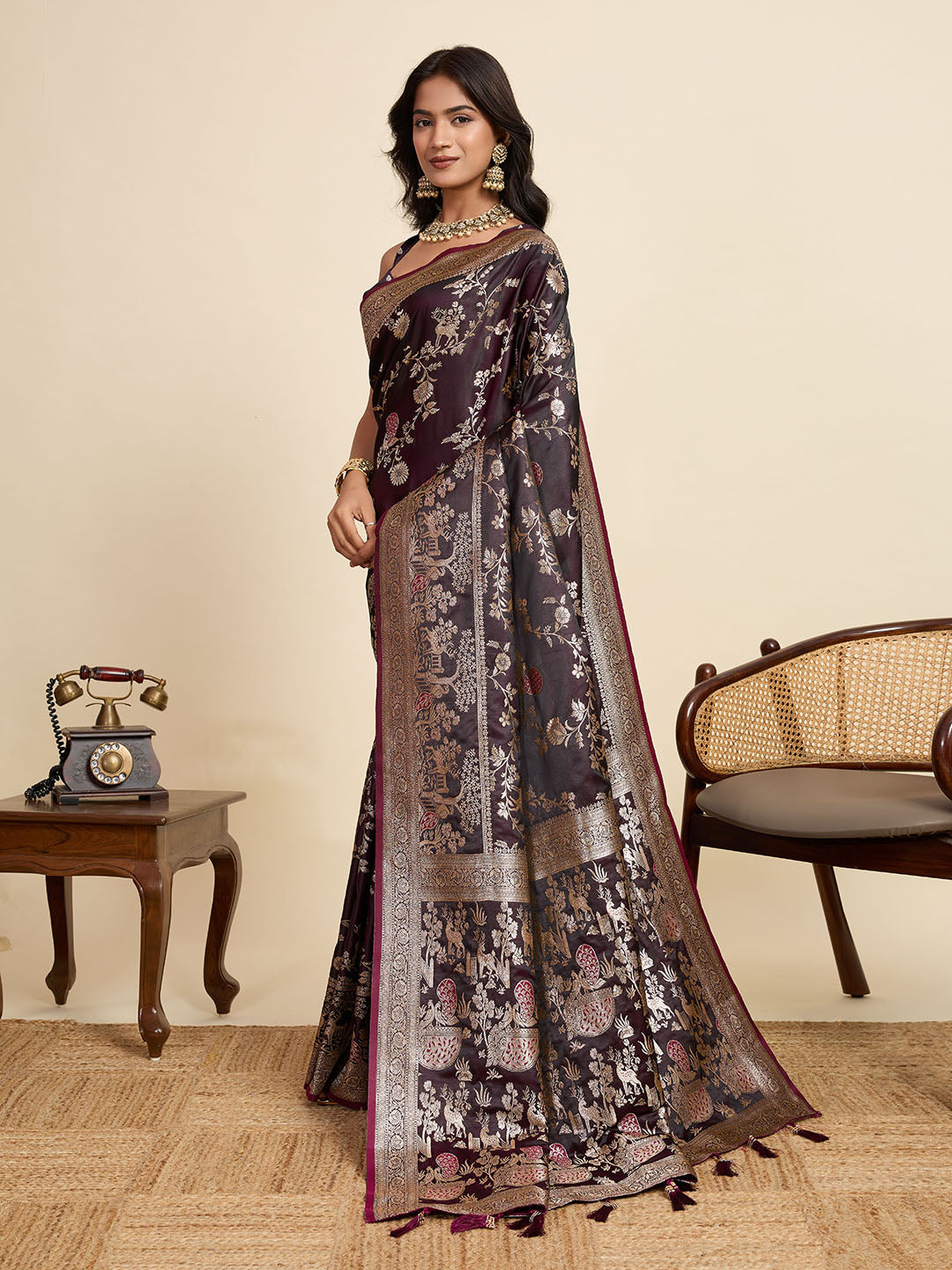 Maroon Soft Silk Sarees Premium Two Tone Satin Fabric With Unique Designs Saree With Blouse Piece 60136
