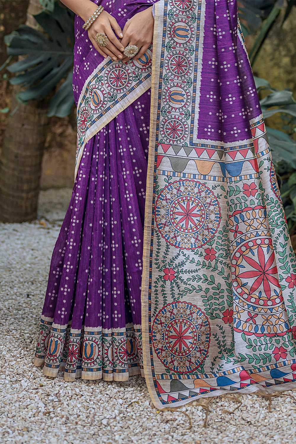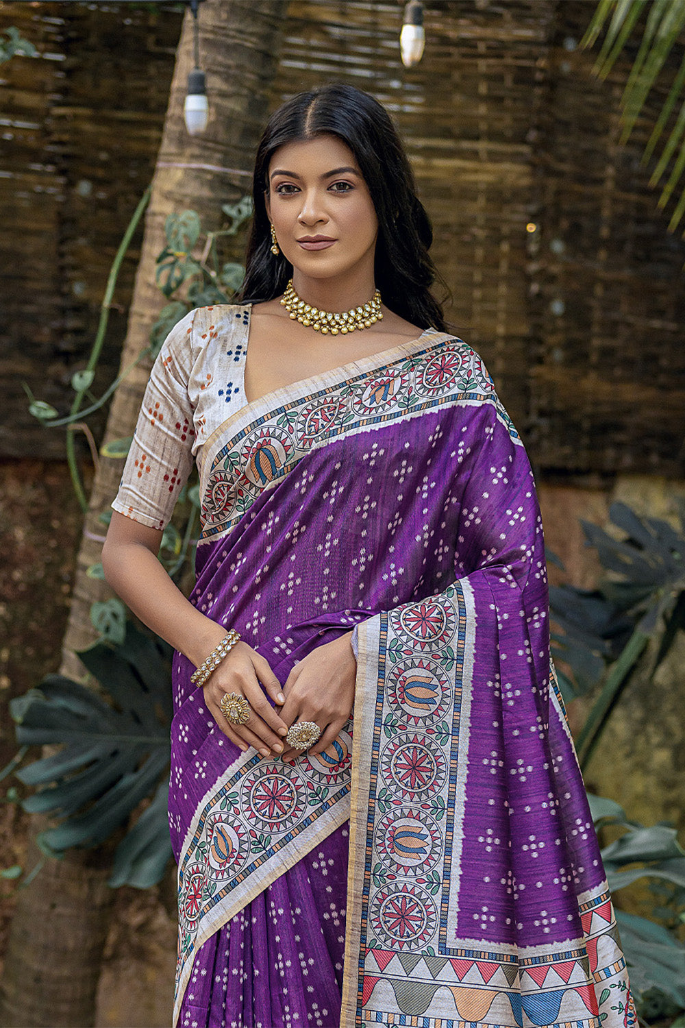 Maroon Tussar Silk Blend Saree With Blouse Piece 60488