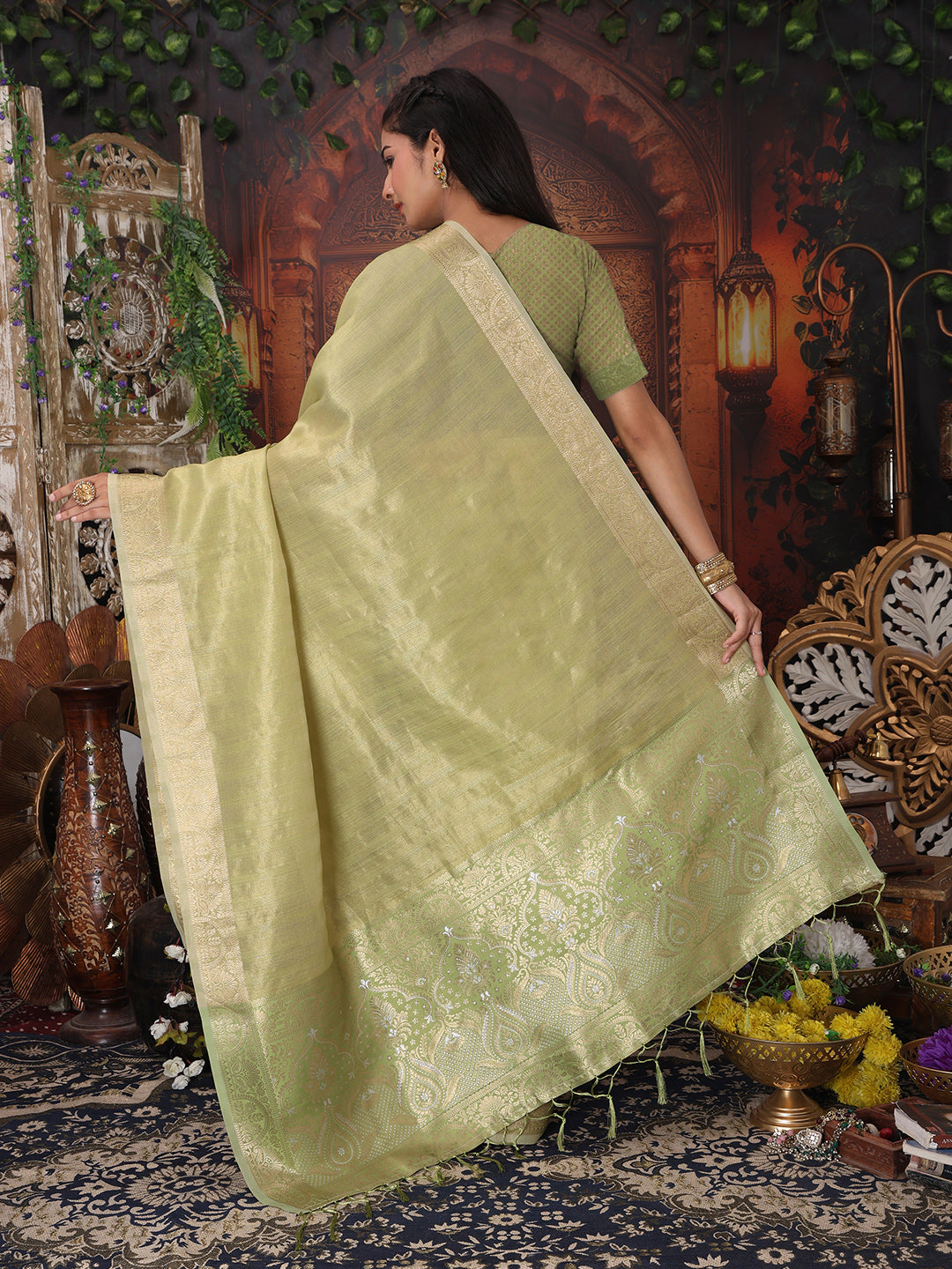 Mhendi Green Organza Saree With Blouse Piece 69275