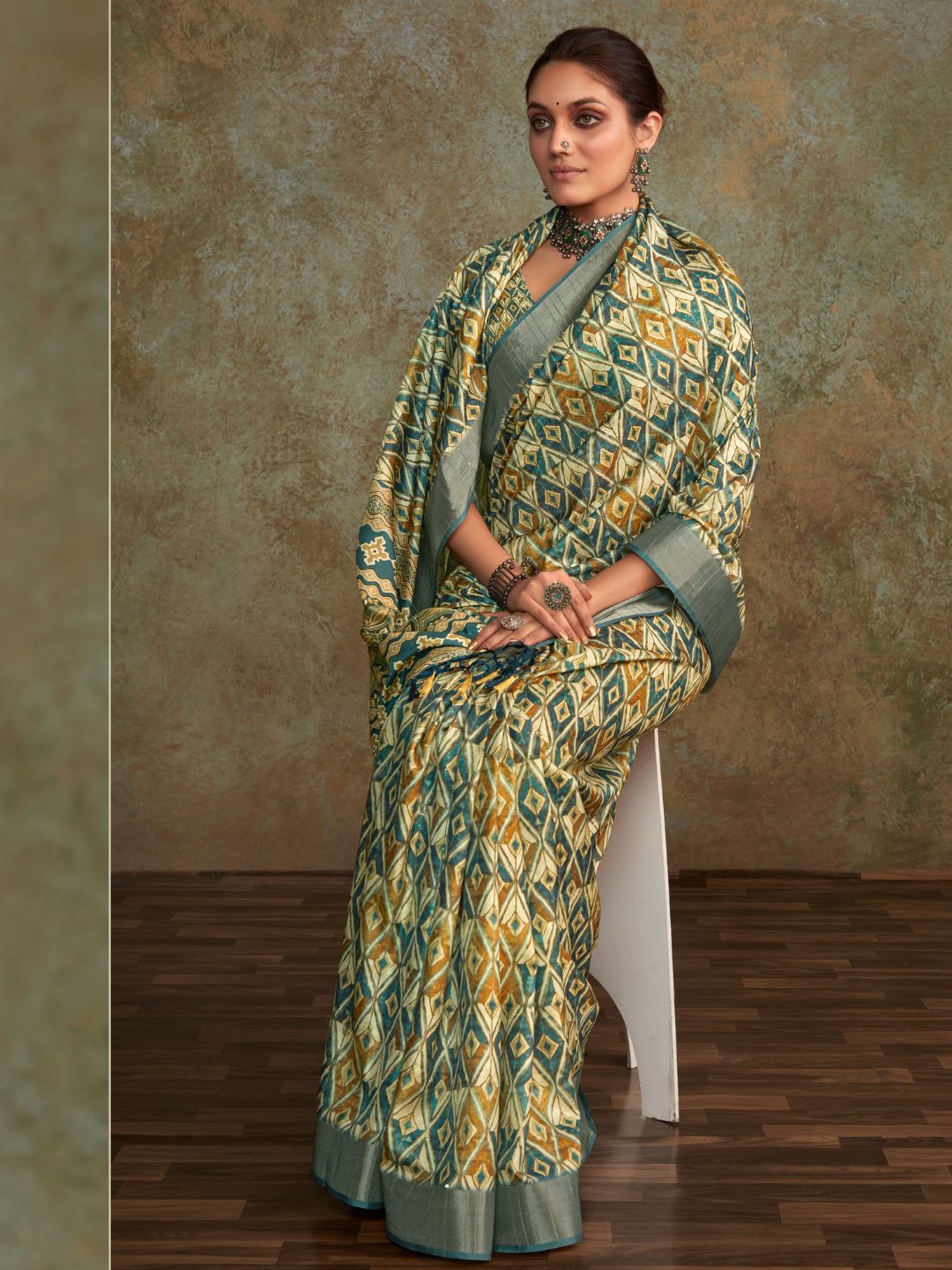 Multi Colour Handloom Silk Floral Print With Sequence Weaving In Body With Blouse Piece 77707