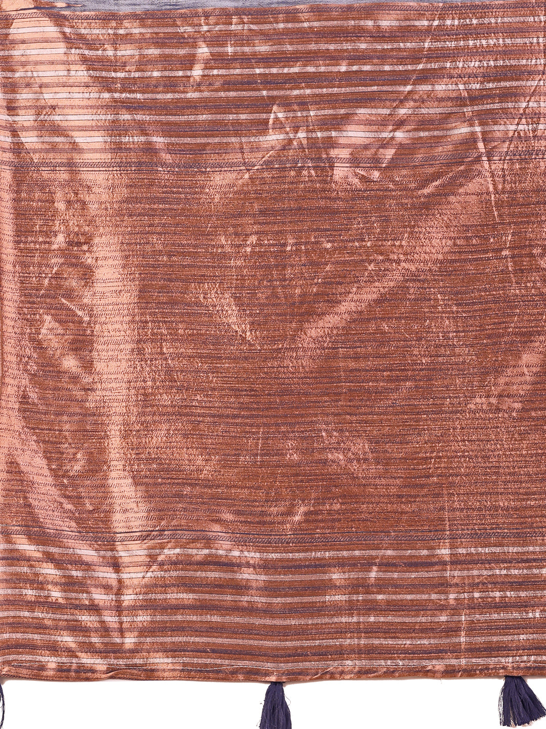 Navy Blue Linen Cotton Saree With Blouse Piece 57177