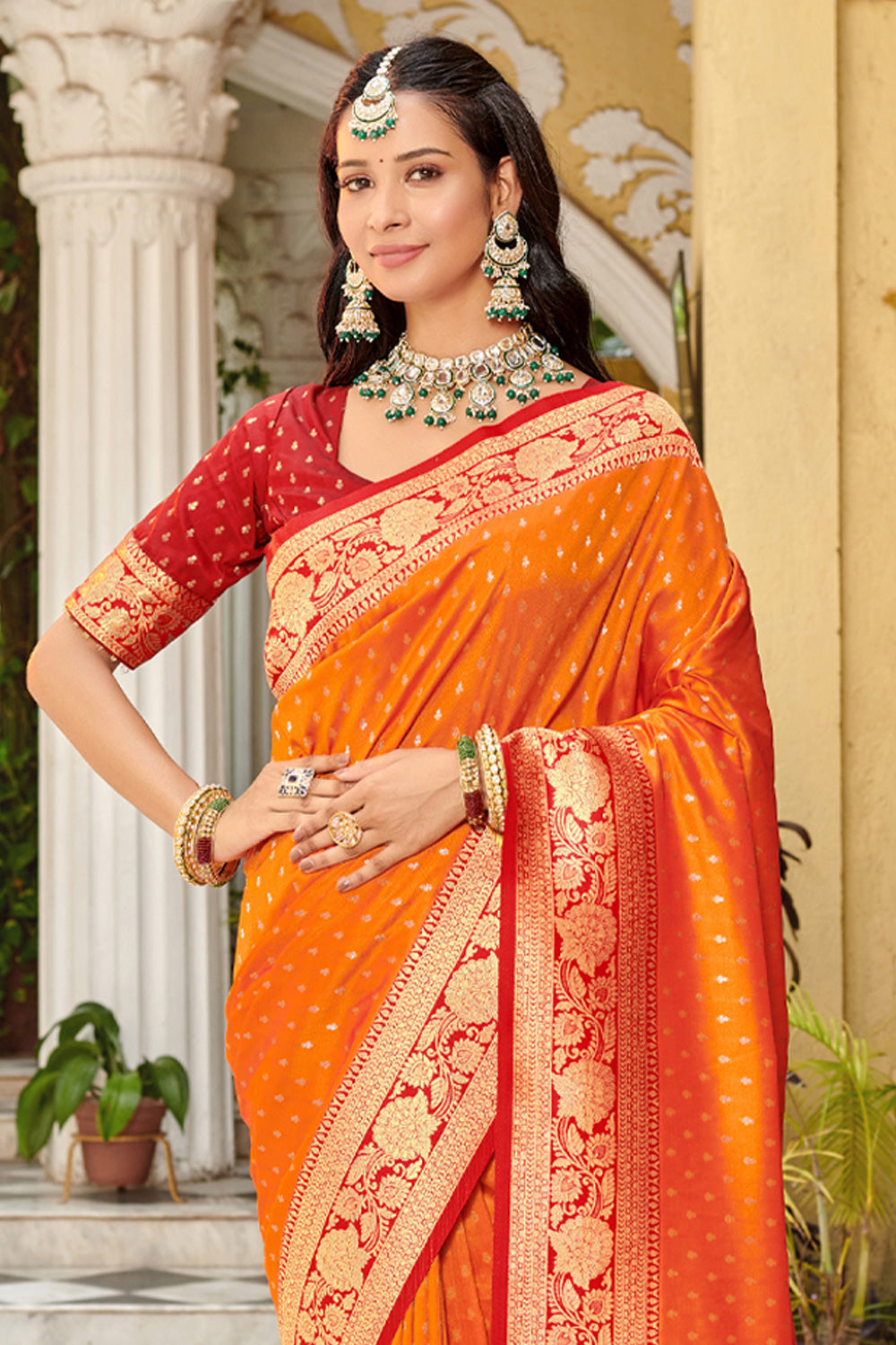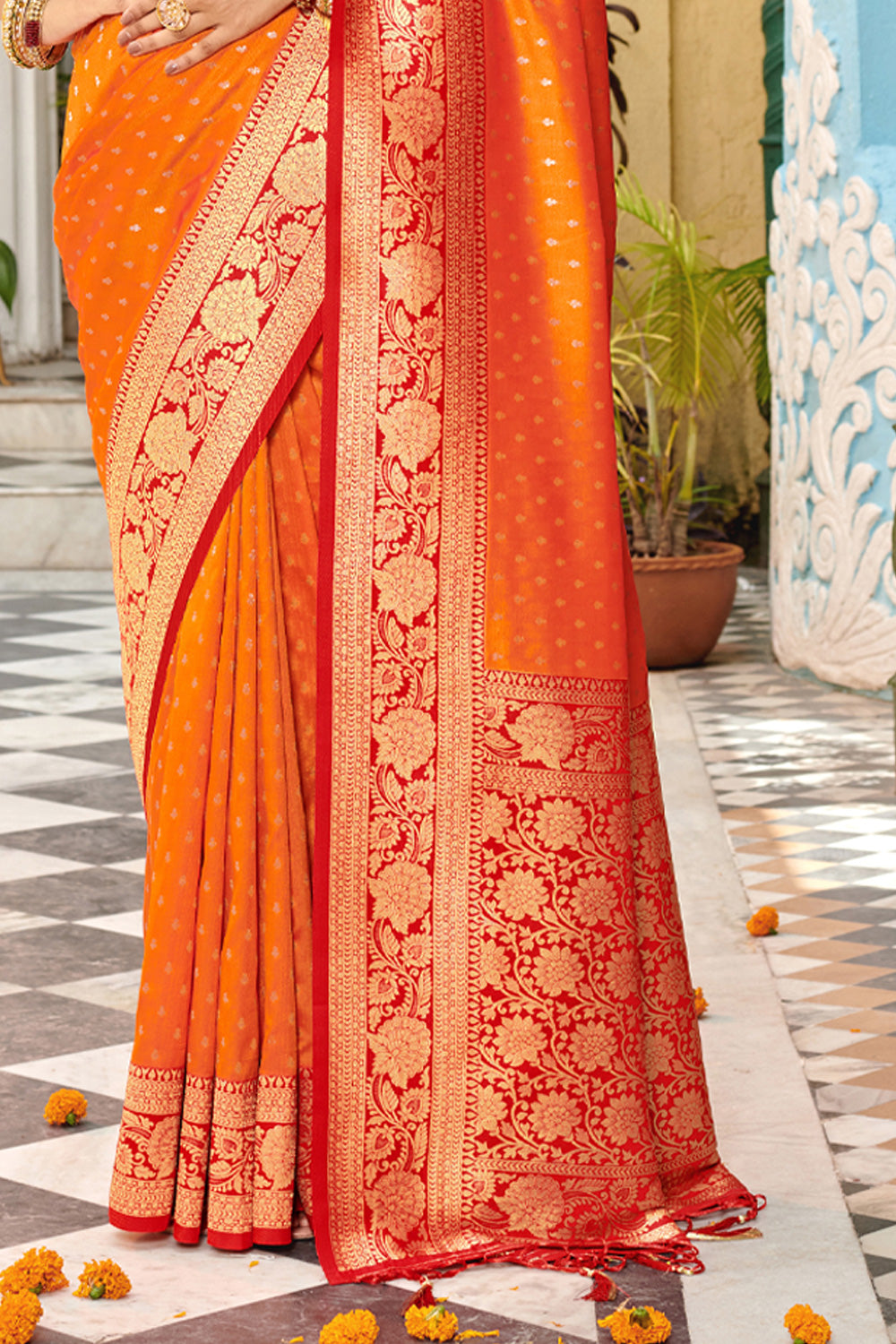 Orange Banarasi Silk Saree With Blouse 22639