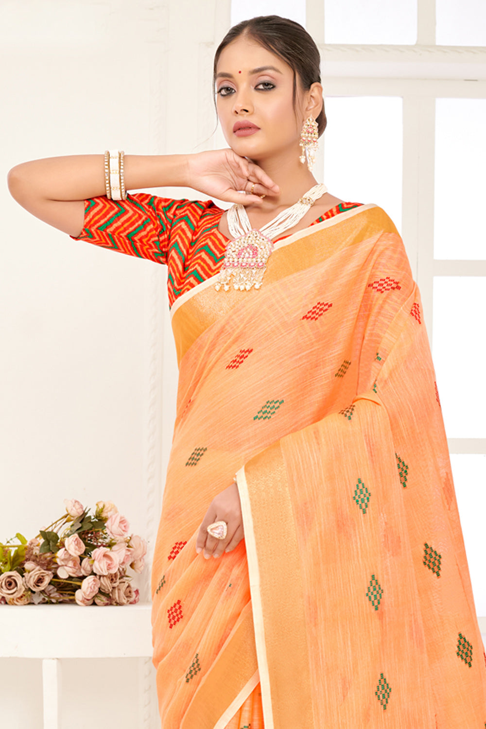 Orange Linen Saree With Blouse 97828