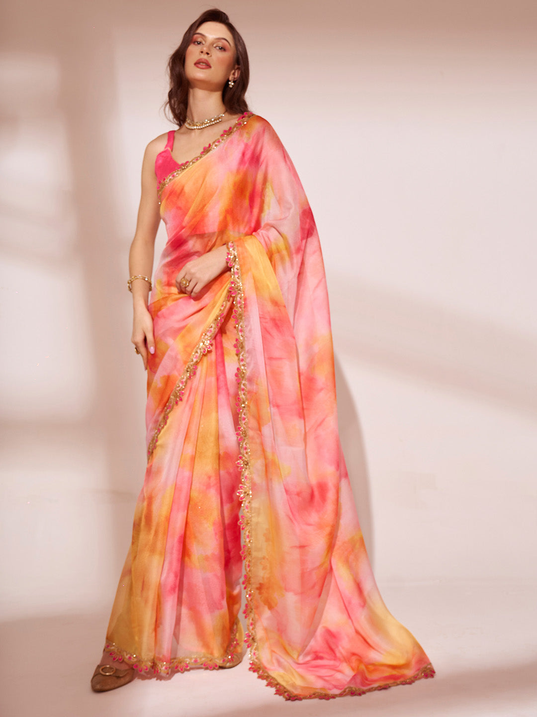 Peach Organza Saree With Blouse Piece 18855