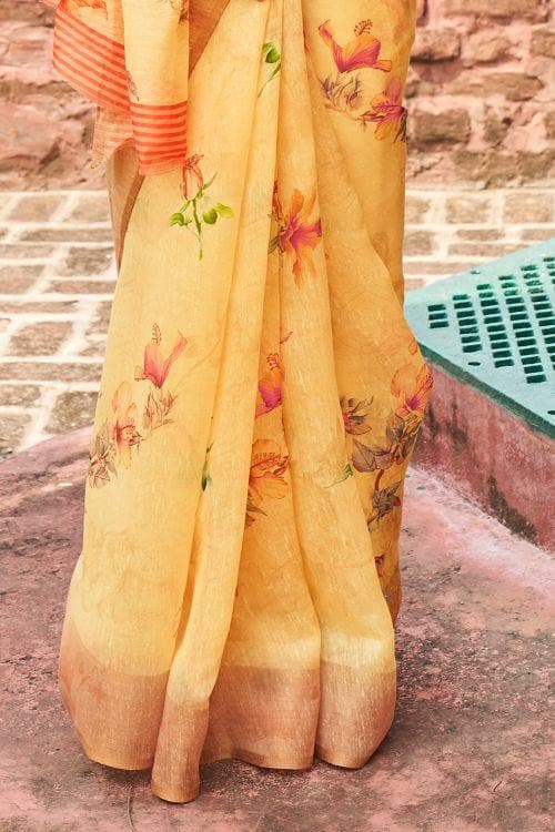Pineapple Yellow Cotton Linen Saree 15197