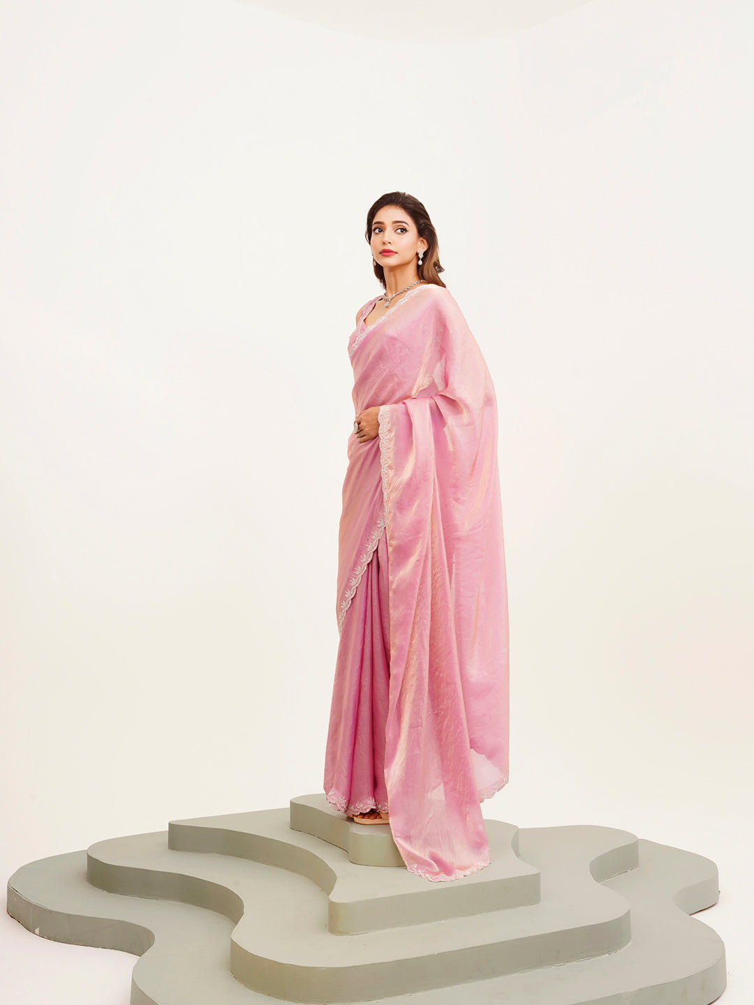Pink Embellished Beads And Stones Partywear Satin Saree 87925