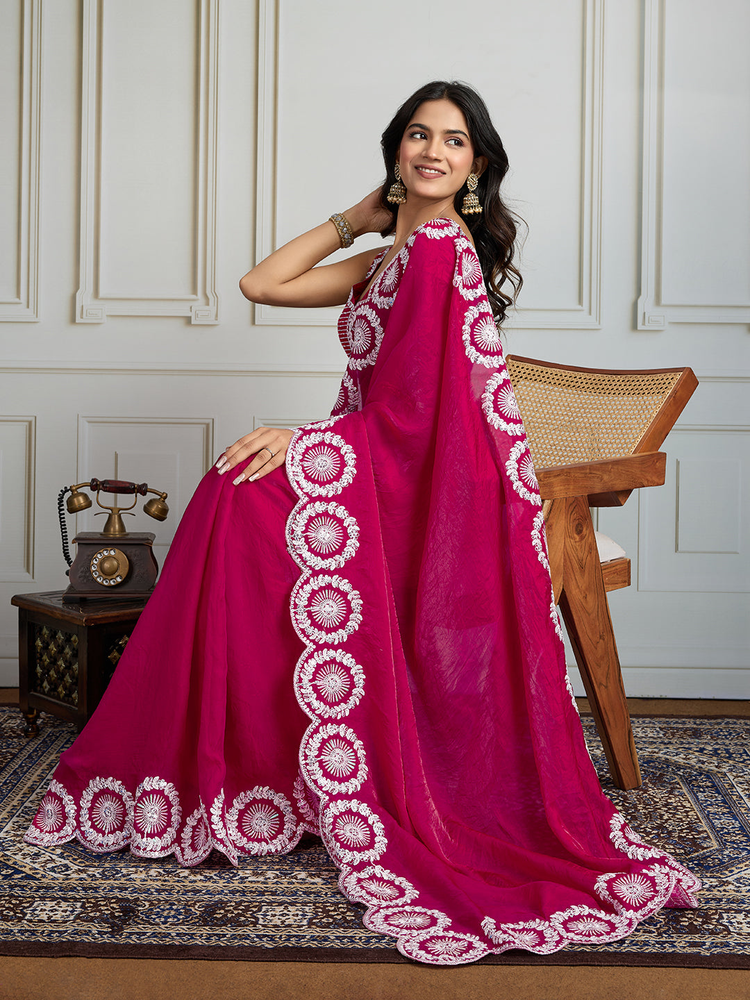 Pink Fandy Satin Embroidered Designer Saree With Blouse 63573