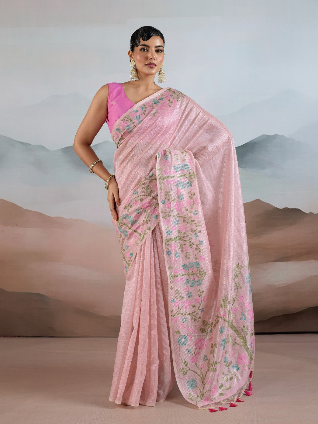 Pink Handloom Zari Tissue Brasso Weaving Saree With Blouse Piece 97510