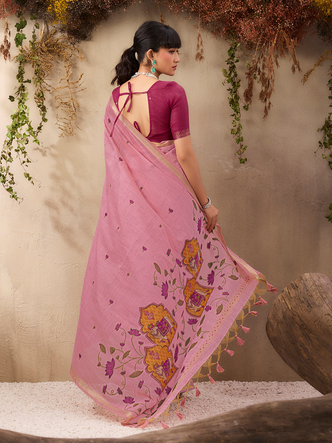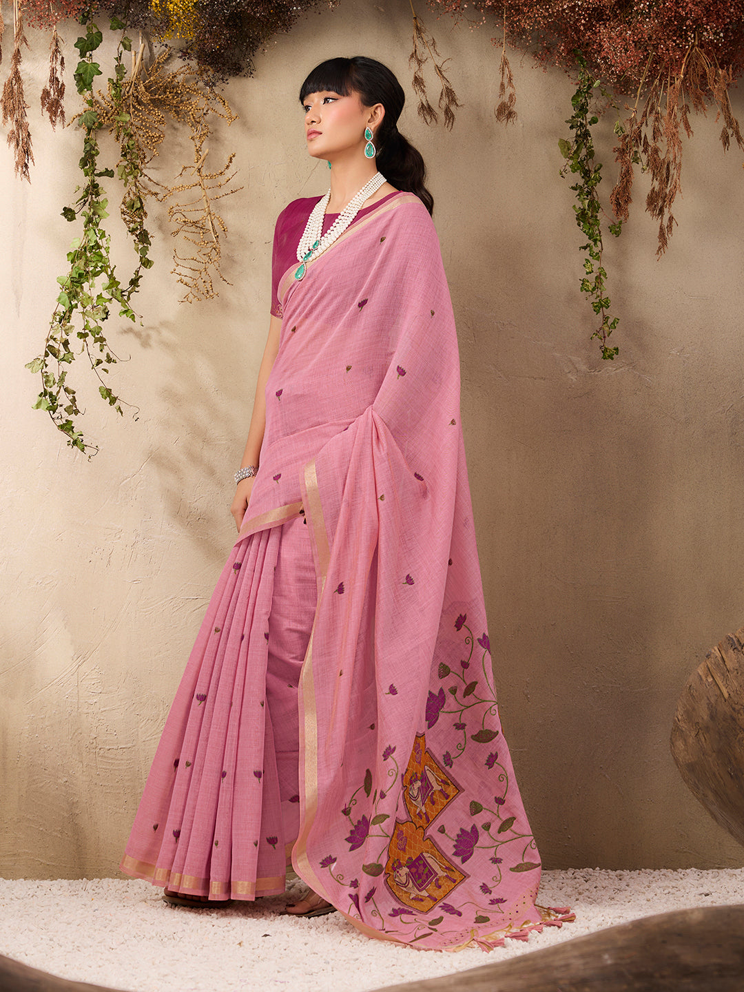 Pink Munga Cotton Handloom Weaving Saree With Blouse Piece 25821