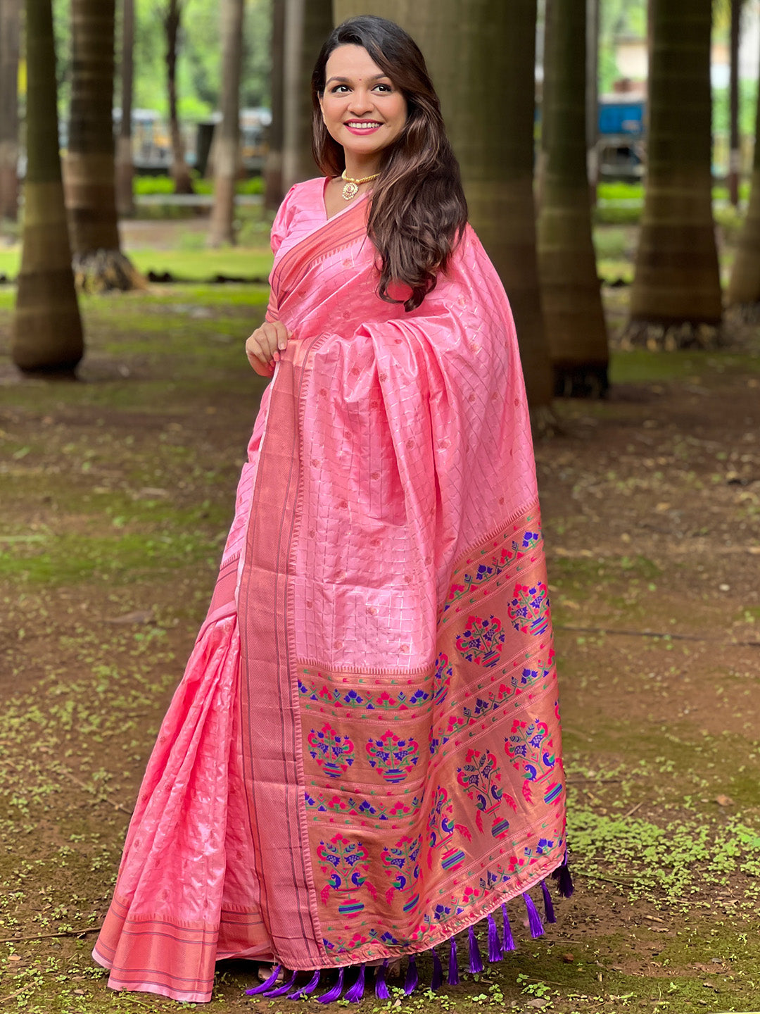Pink Paithani Silk Saree With Blouse Piece 87695