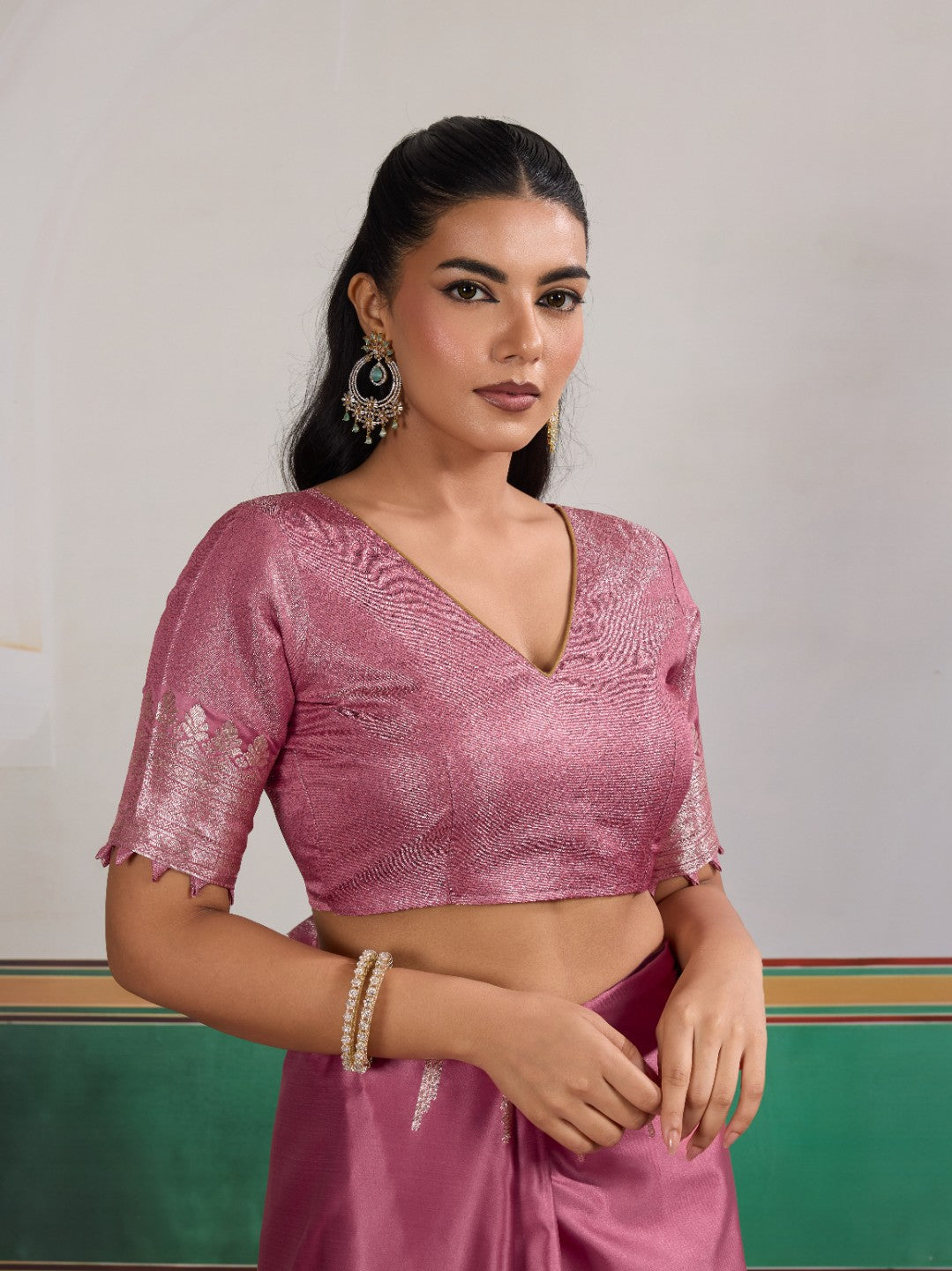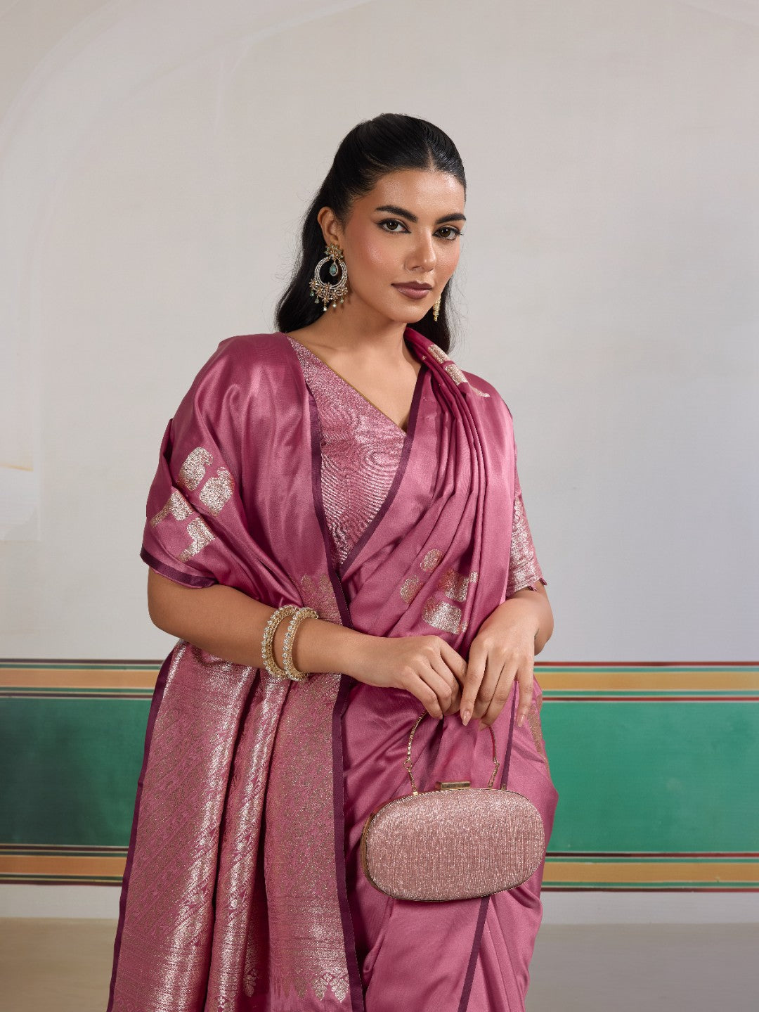 Pink Pure Satin Handloom Weaving Saree With Blouse Piece 55842