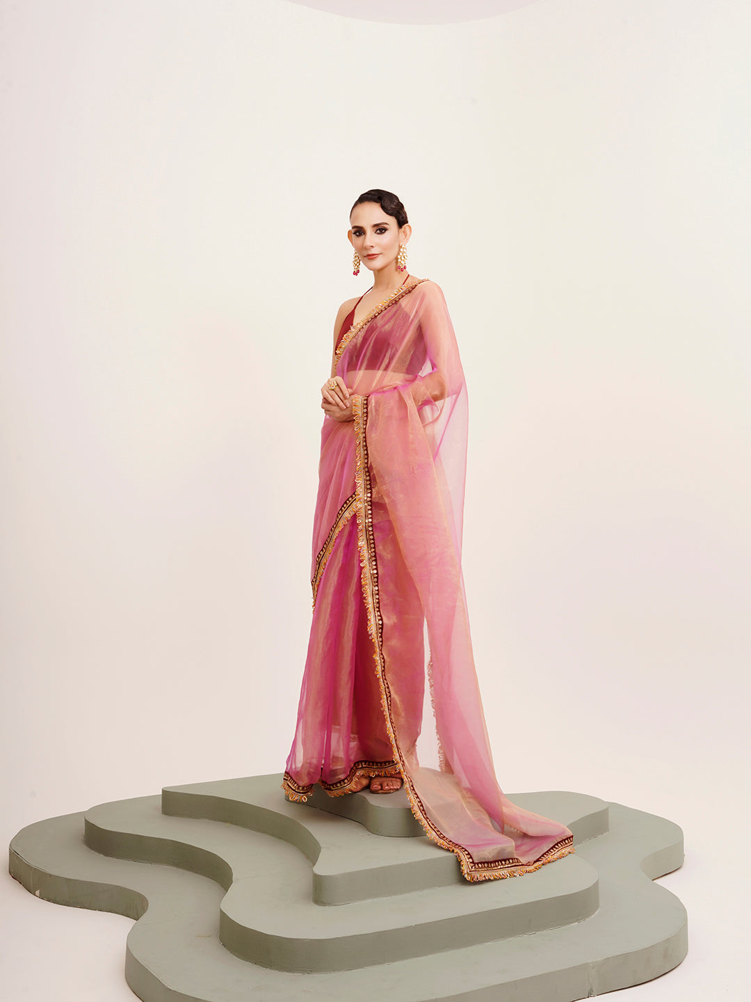 Pink Sequinned Designer Lace Tissue Saree 88100