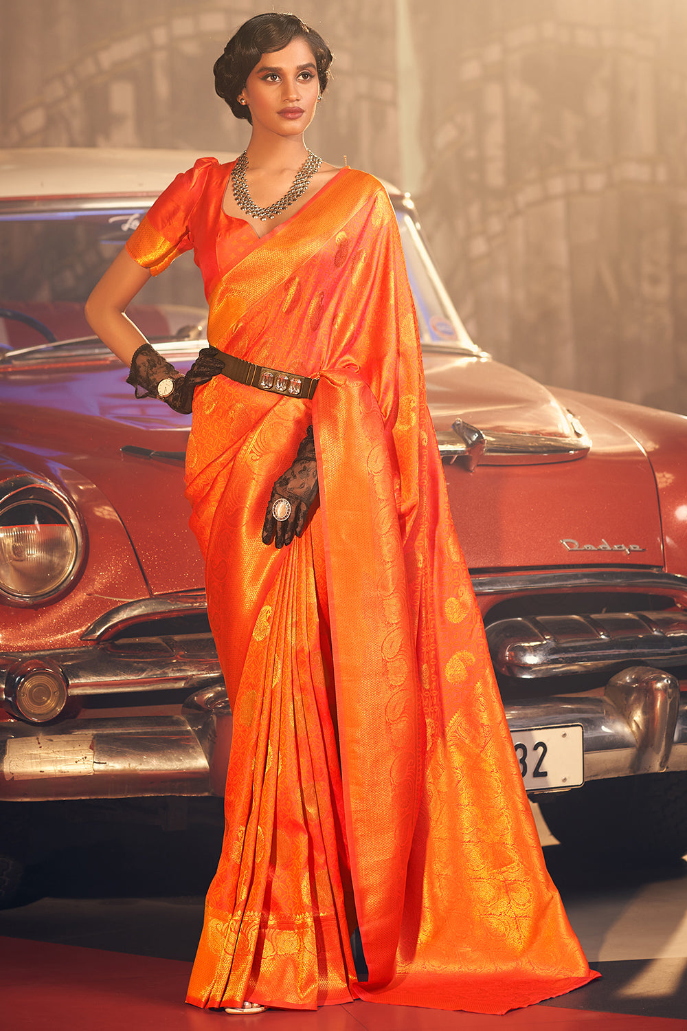 Princeton Orange Silk Saree 58568