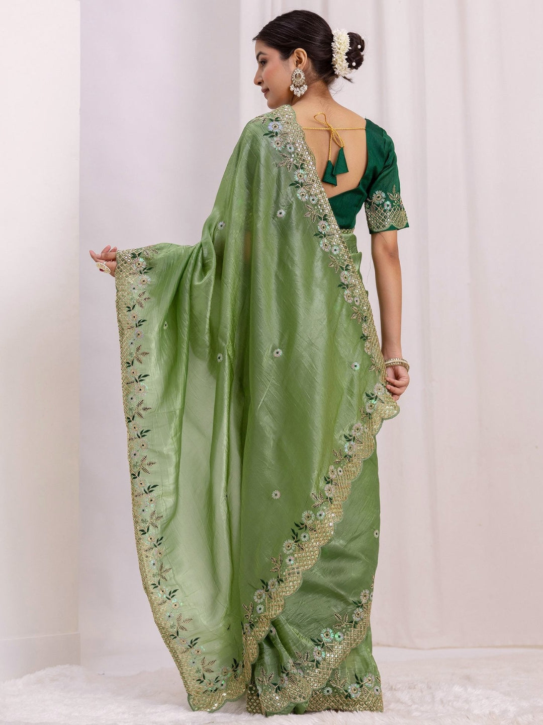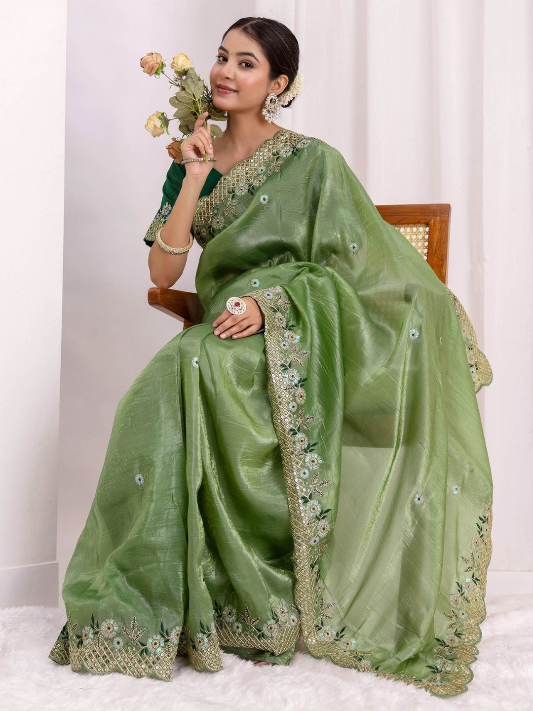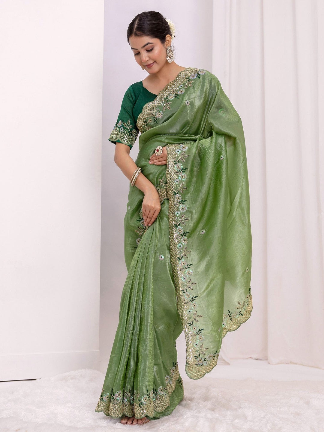 Pure Gold Crush Fabric With Coding Embroidery Work And 3mm Sequence Work With All Over Butta And Amazing Arc Cutting Borders Work 34277